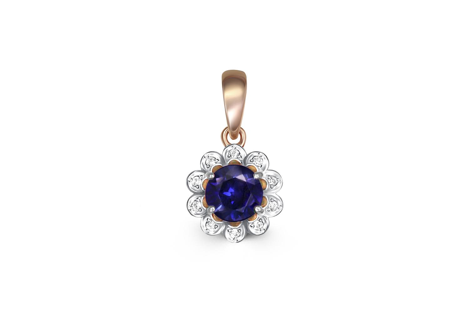 Мастера компании NEWGOLD, приложив всё свое мастерство и искусство, создали для Вас на нашем собственном производстве Подвеска Цветок из красного золота с корундом и 10 бриллиантами.