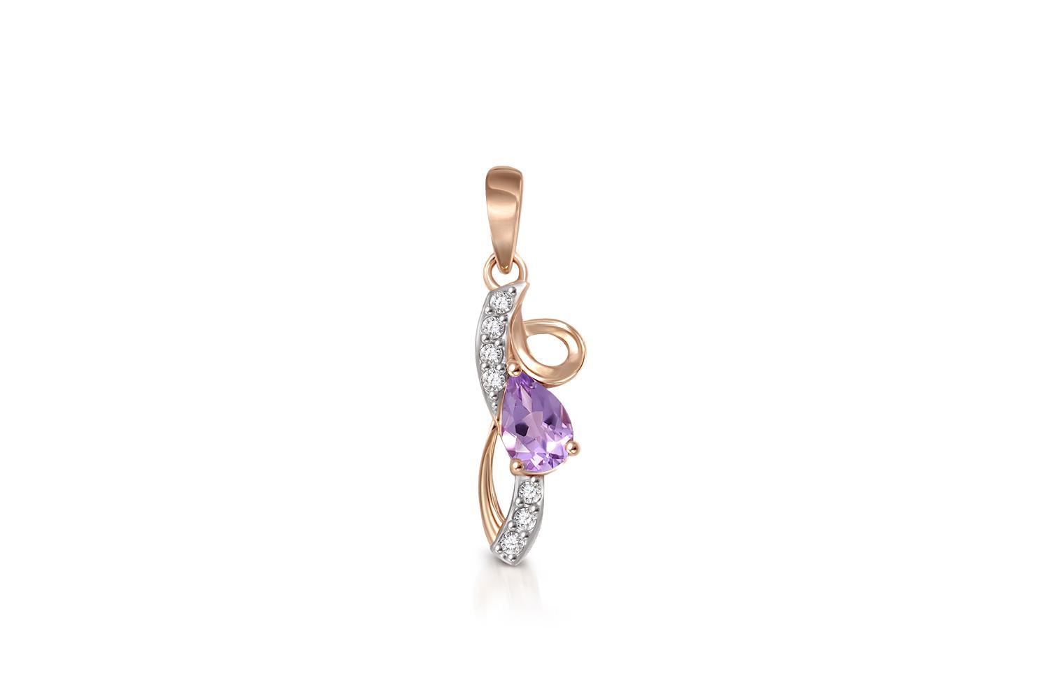 Мастера компании NEWGOLD, приложив всё свое мастерство и искусство, создали для Вас на нашем собственном производстве Подвеска из красного золота с аметистом и 7 фианитами.