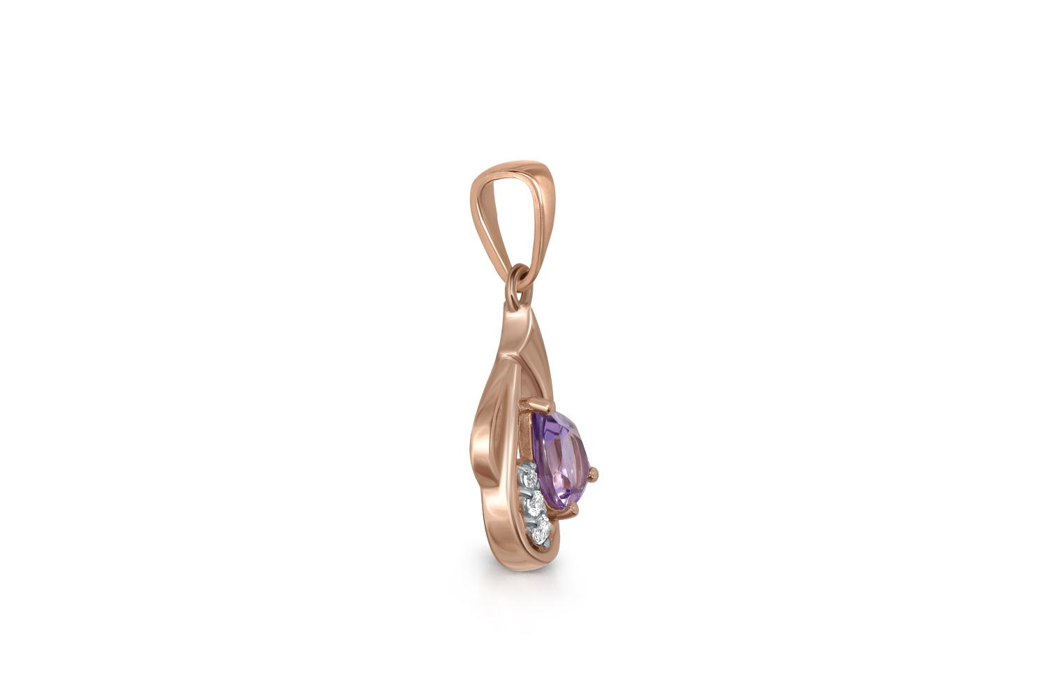 Мастера компании NEWGOLD, приложив всё свое мастерство и искусство, создали для Вас на нашем собственном производстве Подвеска из красного золота с аметистом и 3 фианитами.