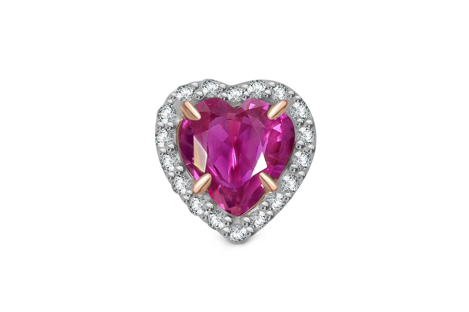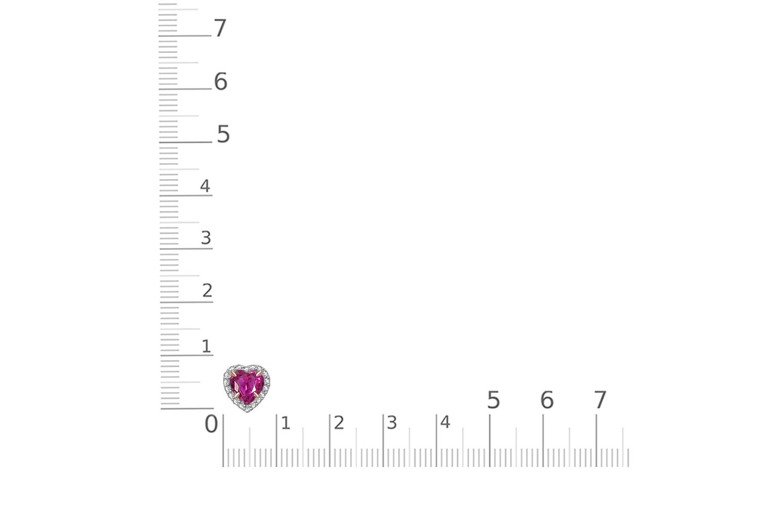 Корунд рубин, количество 1 шт., огранка сердце, размер 6ˣ6 ; Фианит б/цв, количество 18 шт., огранка круг, размер 1 мм
