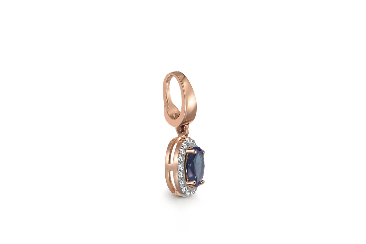 Мастера компании NEWGOLD, приложив всё свое мастерство и искусство, создали для Вас на нашем собственном производстве Подвеска из красного золота с сапфиром и 18 бриллиантами.