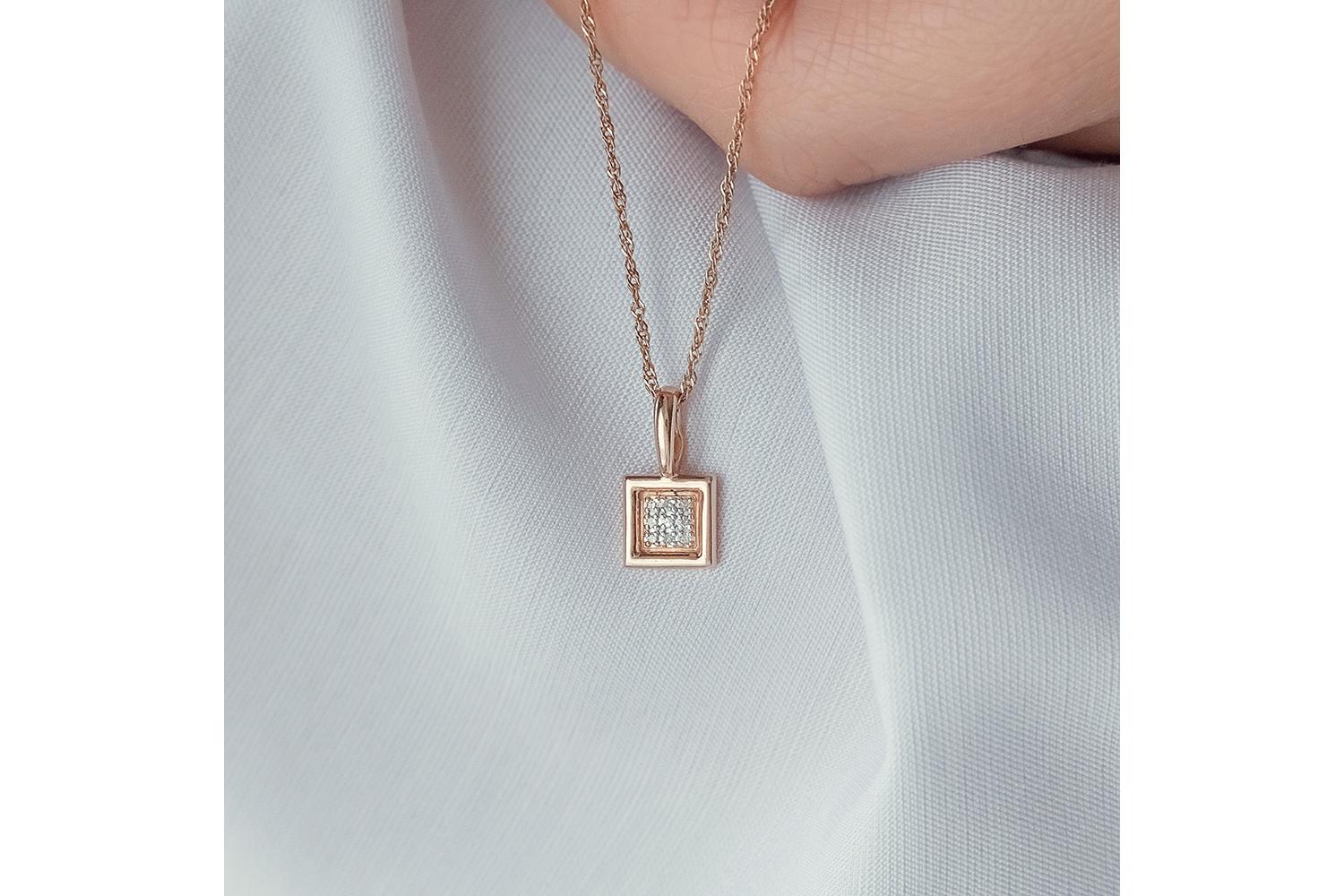 Мастера компании NEWGOLD, приложив всё свое мастерство и искусство, создали для Вас на нашем собственном производстве Подвеска Квадрат из красного золота с 9 бриллиантами.