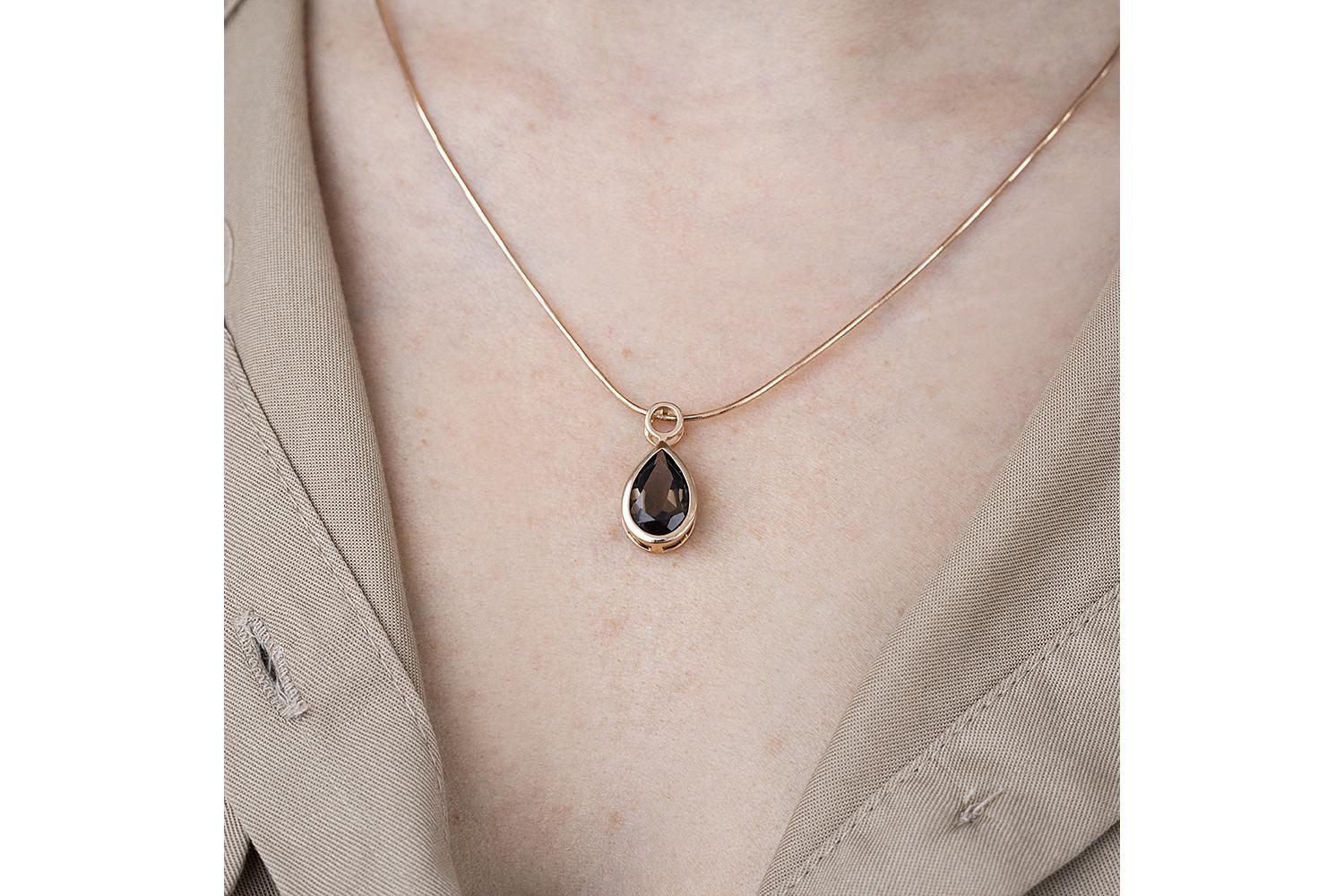 Мастера компании NEWGOLD, приложив всё свое мастерство и искусство, создали для Вас на нашем собственном производстве Подвеска капля из красного золота с раухтопазом.