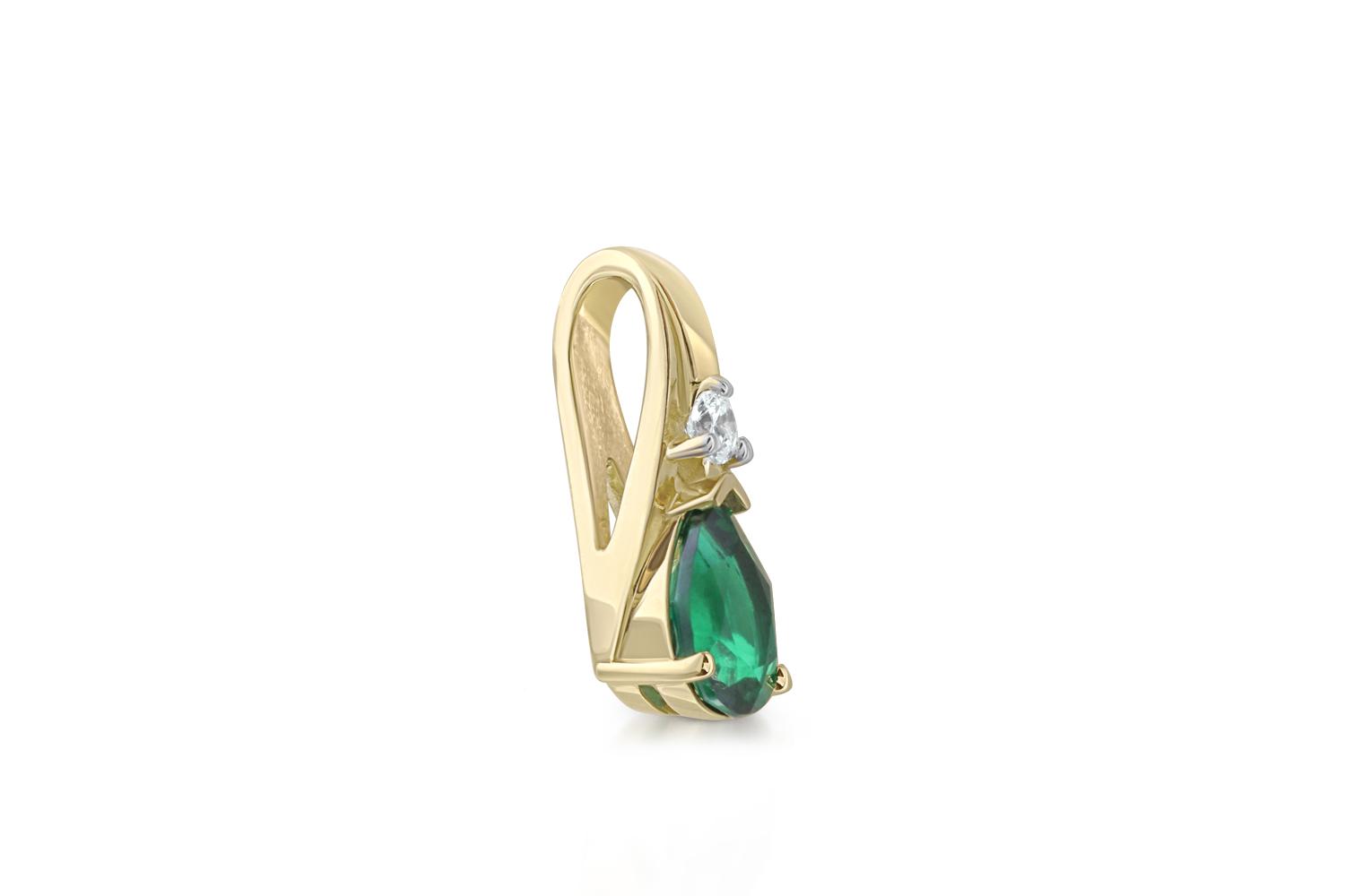 Изумруд Гт искусственный, количество 1 шт., огранка груша, размер 7ˣ5 ; Фианит б/цв, количество 1 шт., огранка круг, размер 2,25 мм