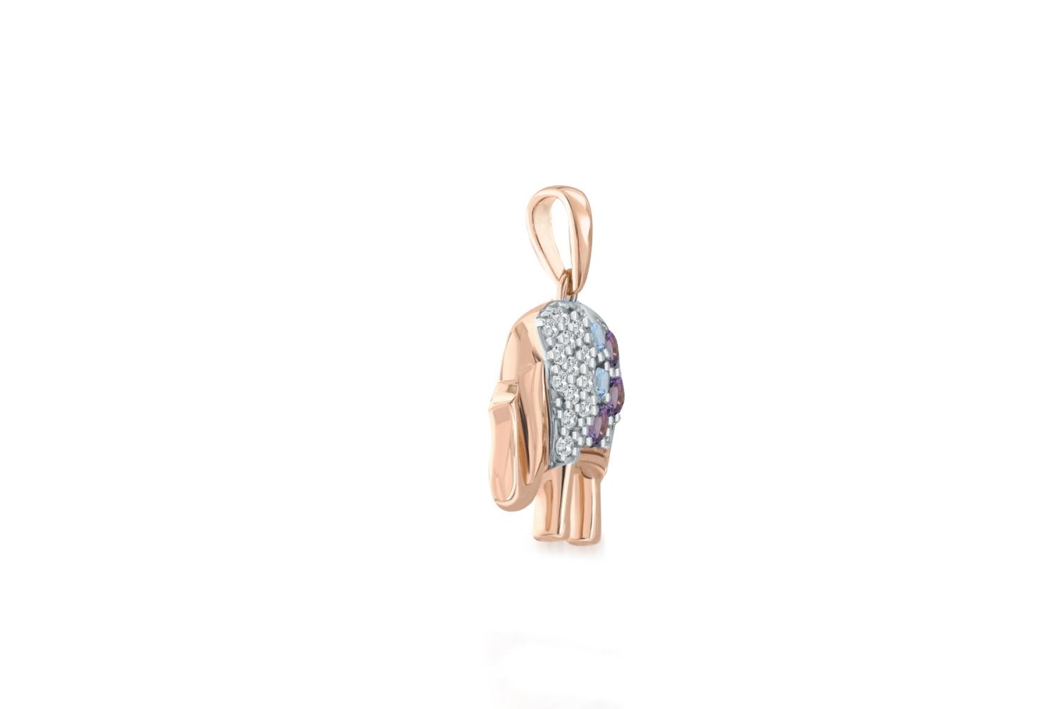 Мастера компании NEWGOLD, приложив всё свое мастерство и искусство, создали для Вас на нашем собственном производстве Подвеска Слоник из красного золота с аметистами, топазами swiss и фианитами.