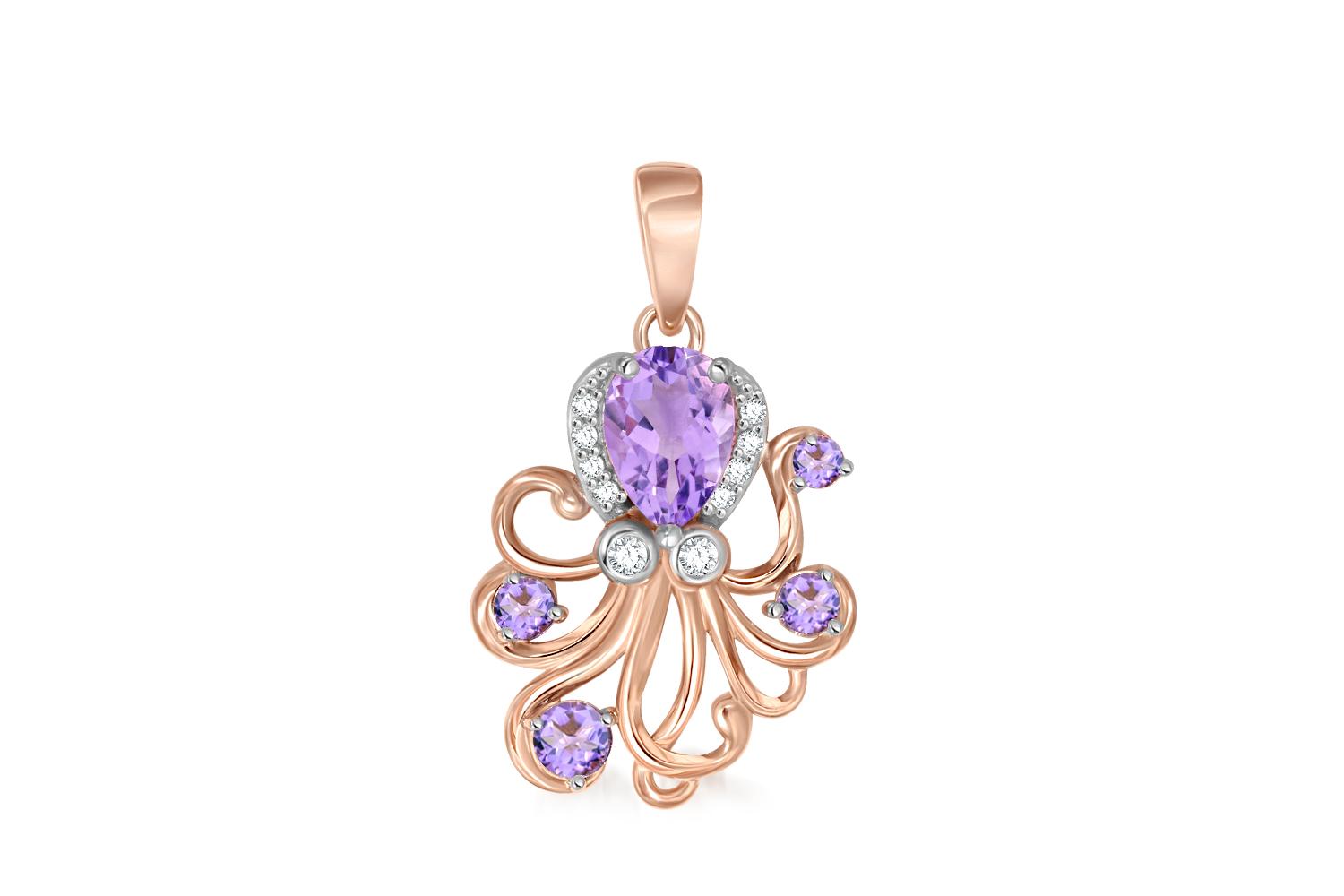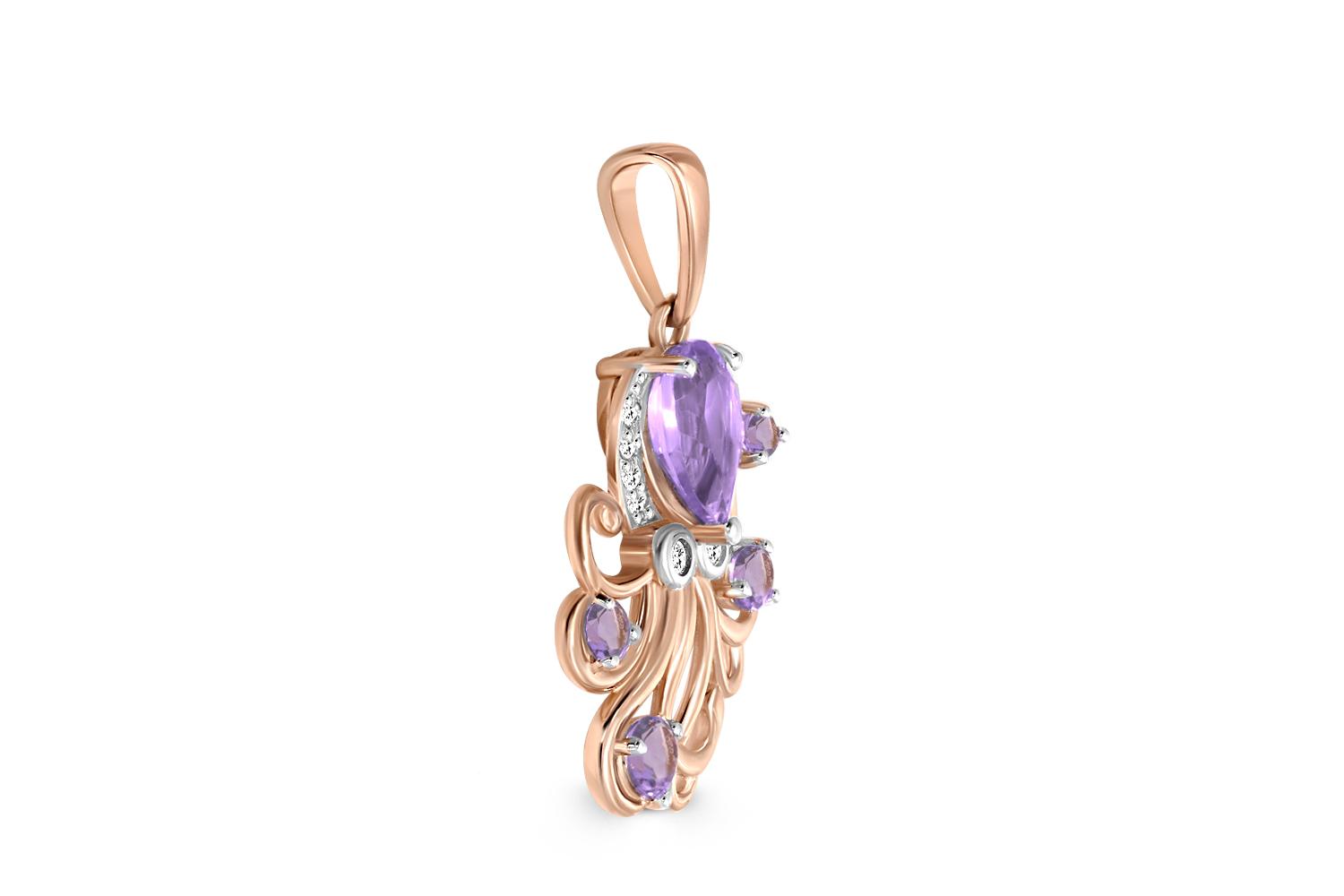 Мастера компании NEWGOLD, приложив всё свое мастерство и искусство, создали для Вас на нашем собственном производстве Подвеска из красного золота с 5 аметистами и 10 фианитами.