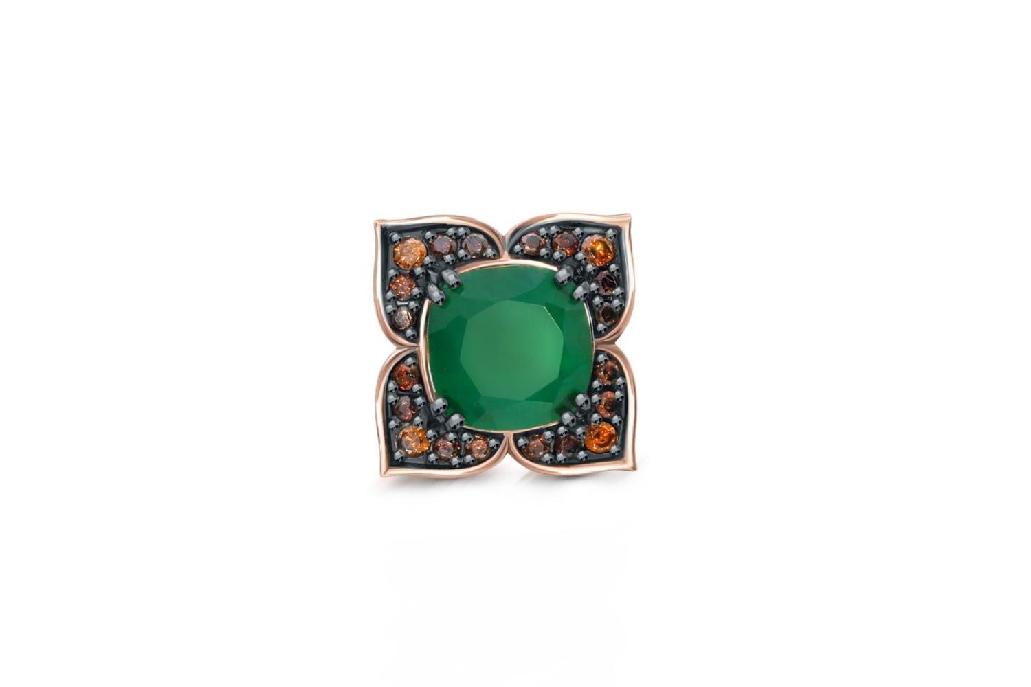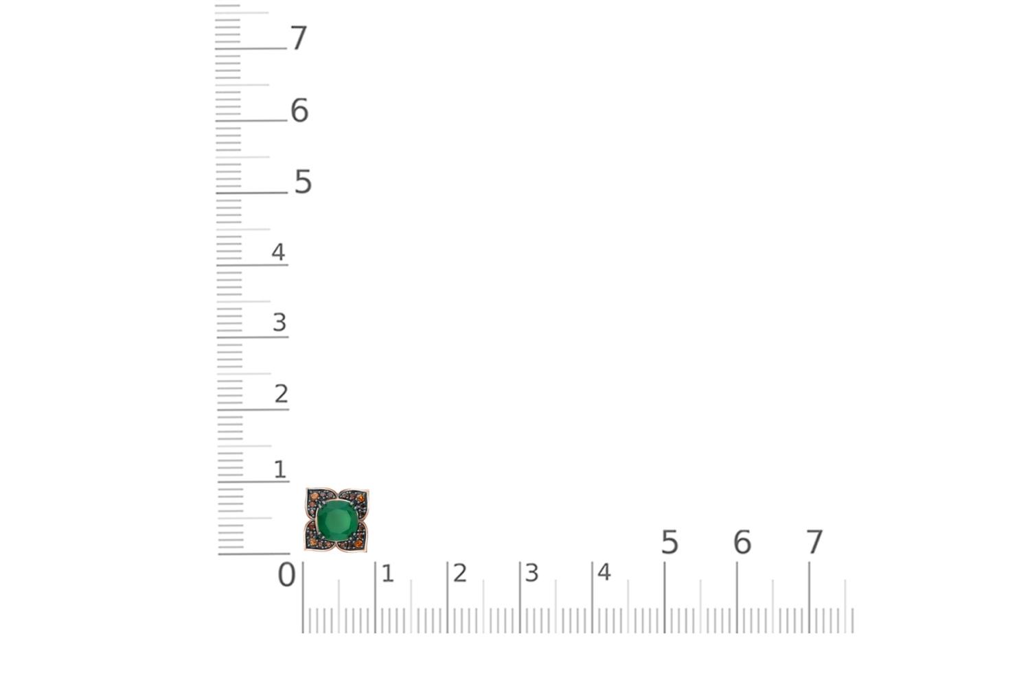 Агат зеленый, количество 1 шт., огранка антик, размер 6ˣ6 ; Фианит коричневый, количество 4 шт., огранка круг, размер 1,25 мм ; Фианит коричневый, количество 16 шт., огранка круг, размер 0,9 мм