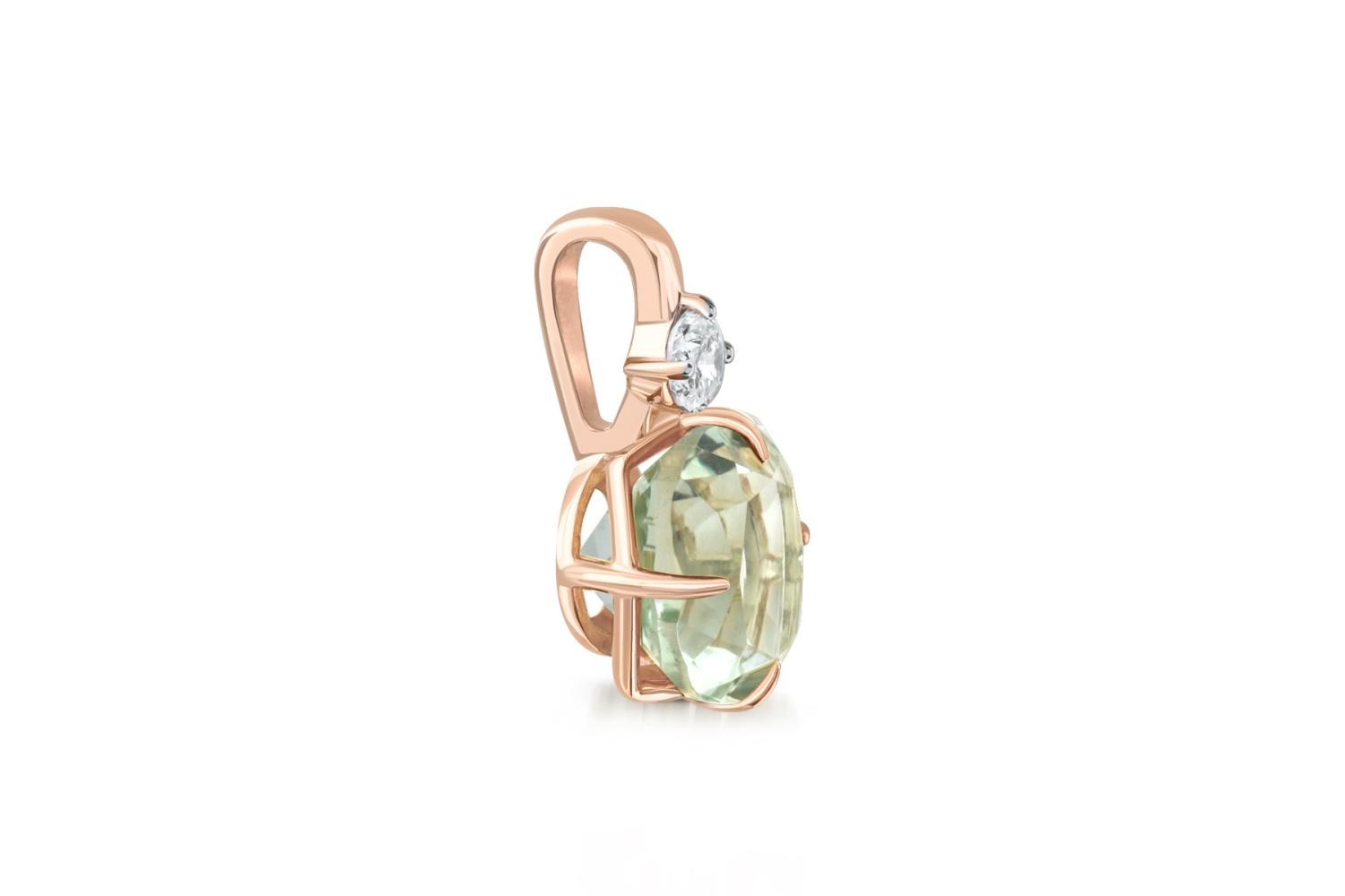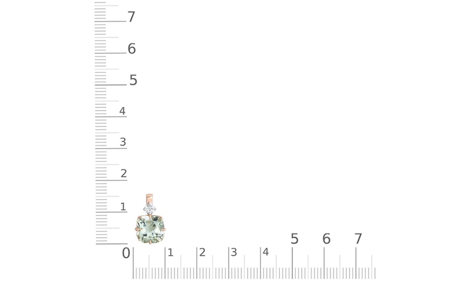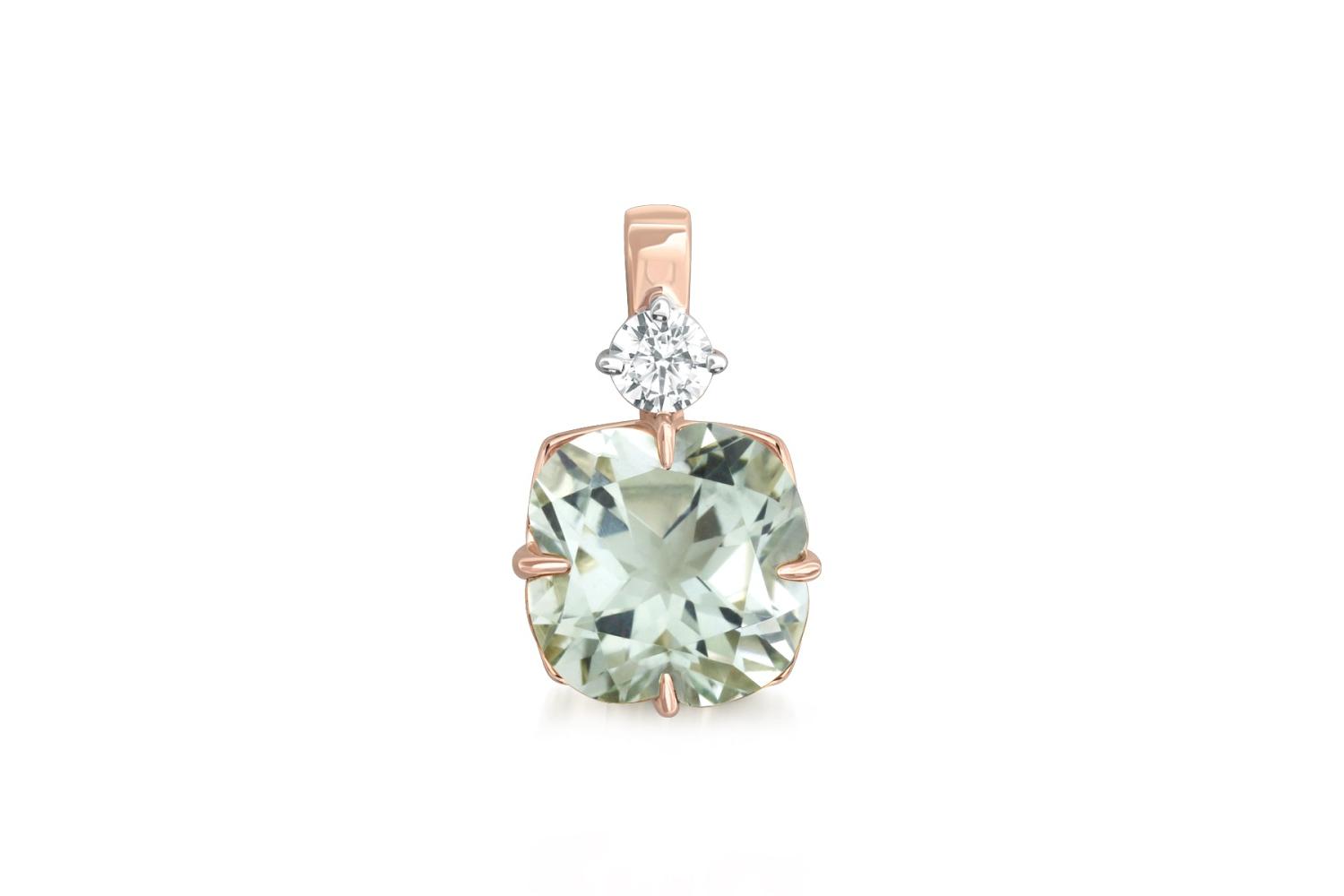 Аметист зеленый натуральный, количество 1 шт., огранка цветок, размер 8 мм ; Фианит б/цв, количество 1 шт., огранка круг, размер 3 мм