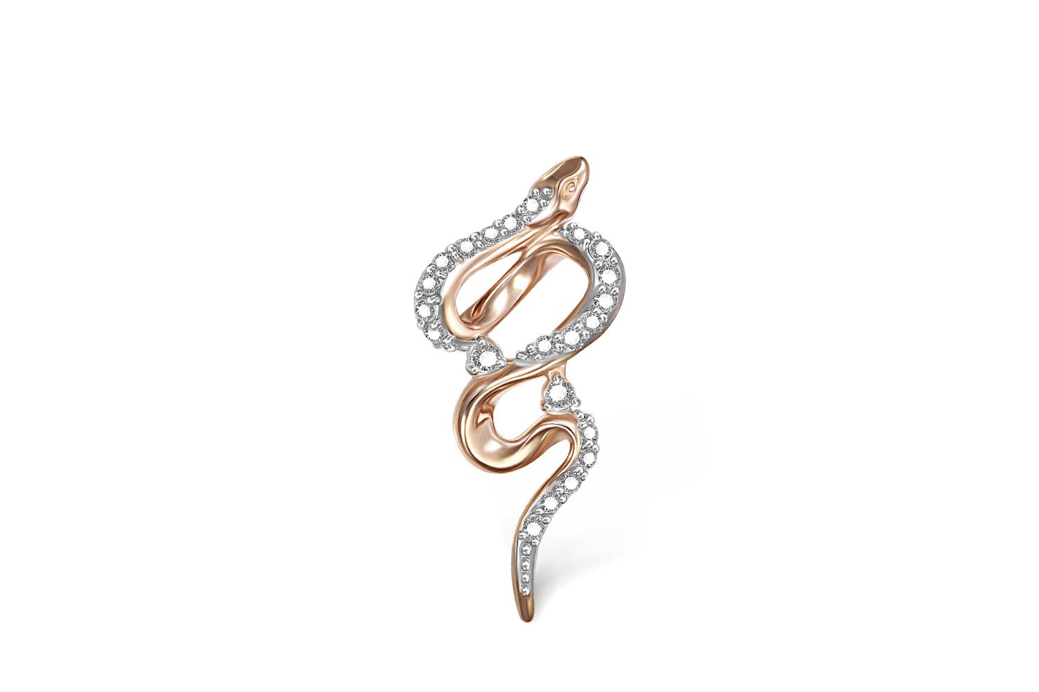 Мастера компании NEWGOLD, приложив всё свое мастерство и искусство, создали для Вас на нашем собственном производстве Подвеска Змея из красного золота с 22 бриллиантами.