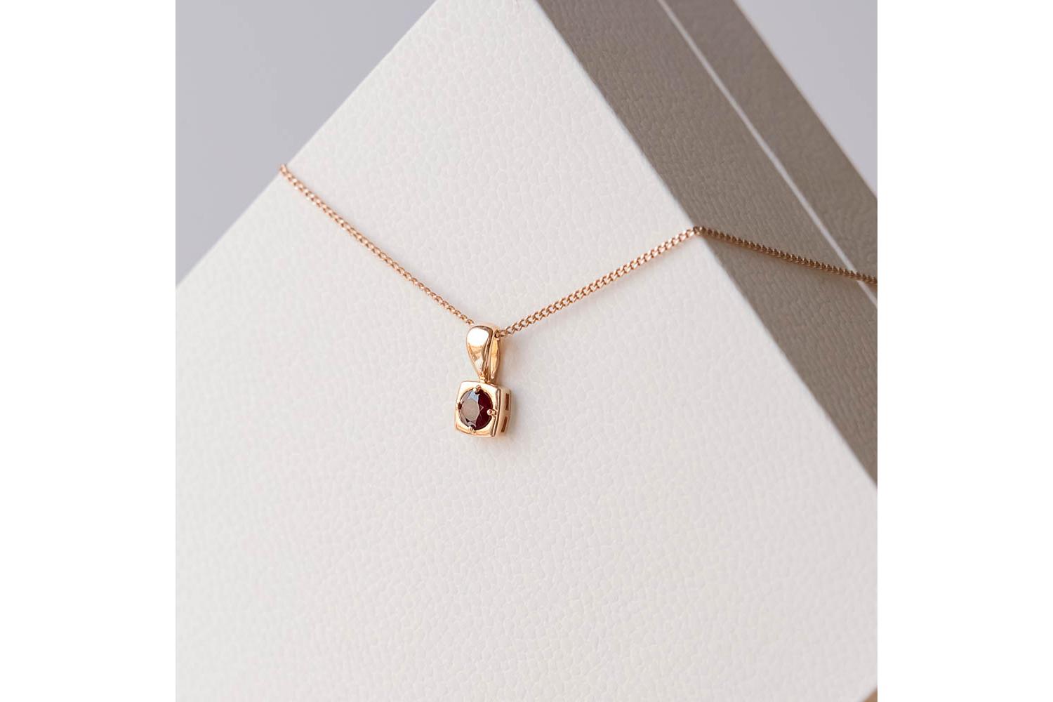 Мастера компании NEWGOLD, приложив всё свое мастерство и искусство, создали для Вас на нашем собственном производстве Подвеска Квадрат из красного золота с гранатом.
