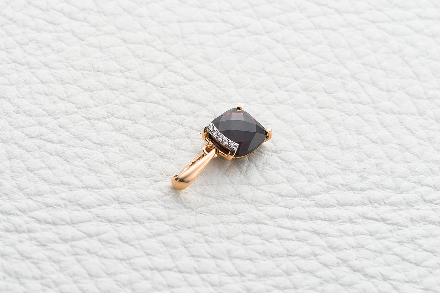 Мастера компании NEWGOLD, приложив всё свое мастерство и искусство, создали для Вас на нашем собственном производстве Подвеска из красного золота с гранатом и 5 фианитами.