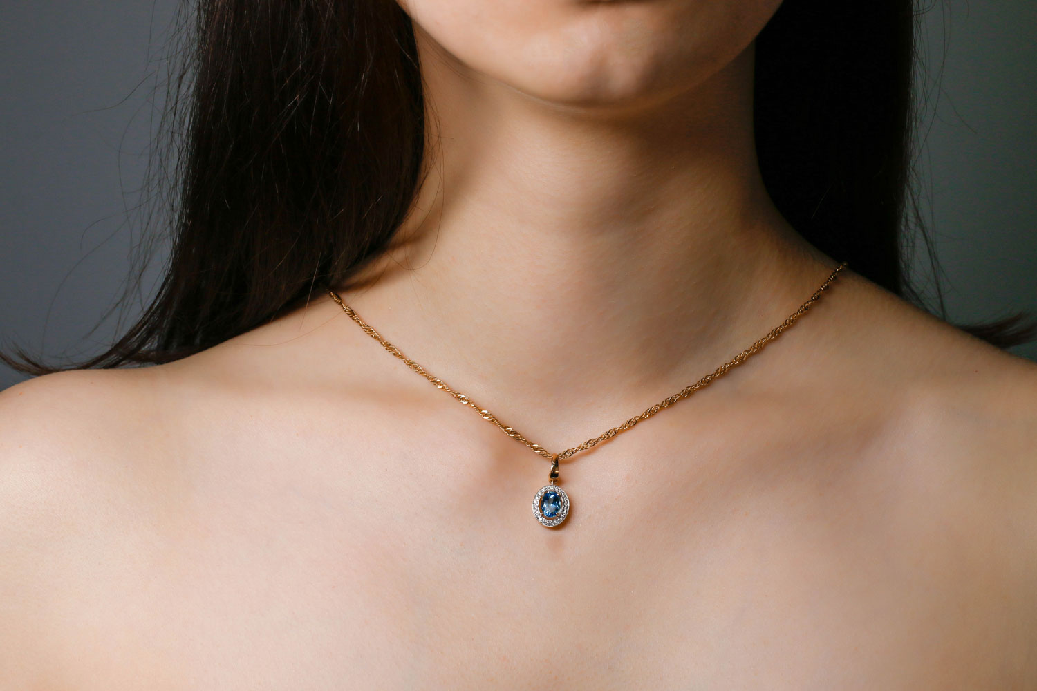 Топаз Swiss натуральный, количество 1 шт., огранка овал, размер 8ˣ6 ; Фианит б/цв, количество 22 шт., огранка круг, размер 1,25 мм