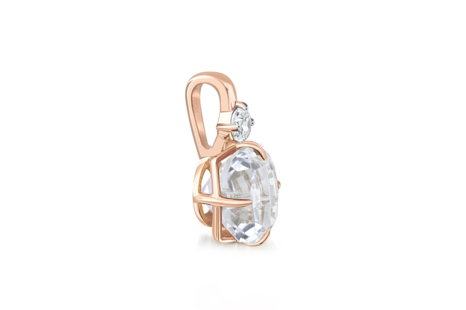 Горный хрусталь натуральный, количество 1 шт., огранка цветок, размер 8 мм ; Фианит б/цв, количество 1 шт., огранка круг, размер 3 мм