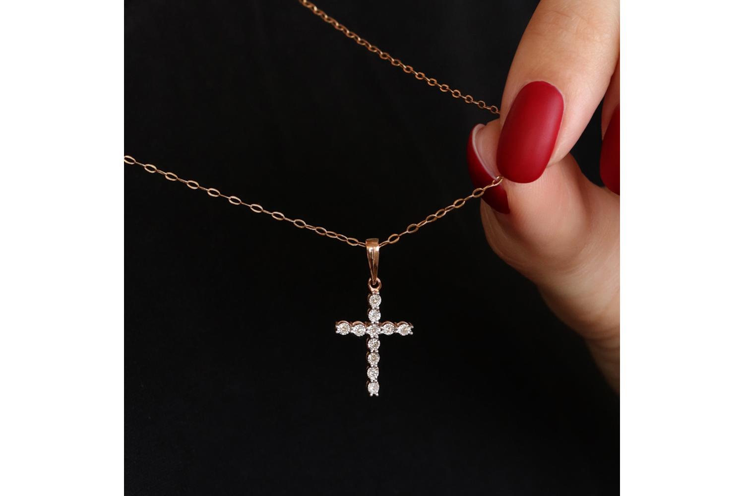 Мастера компании NEWGOLD, приложив всё свое мастерство и искусство, создали для Вас на нашем собственном производстве Подвеска Крест из красного золота с 11 бриллиантами.