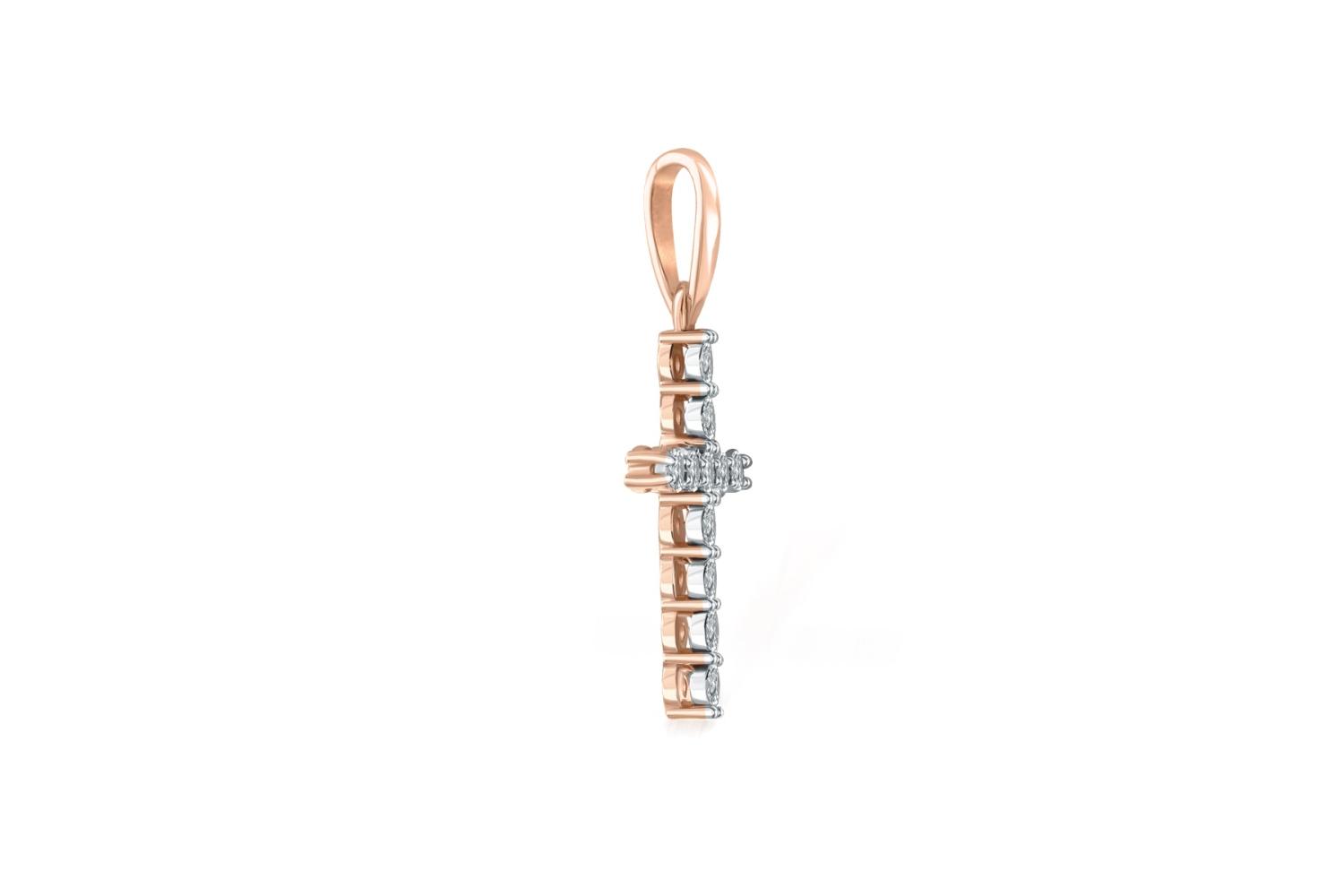 Мастера компании NEWGOLD, приложив всё свое мастерство и искусство, создали для Вас на нашем собственном производстве Подвеска Крест из красного золота с 11 бриллиантами.