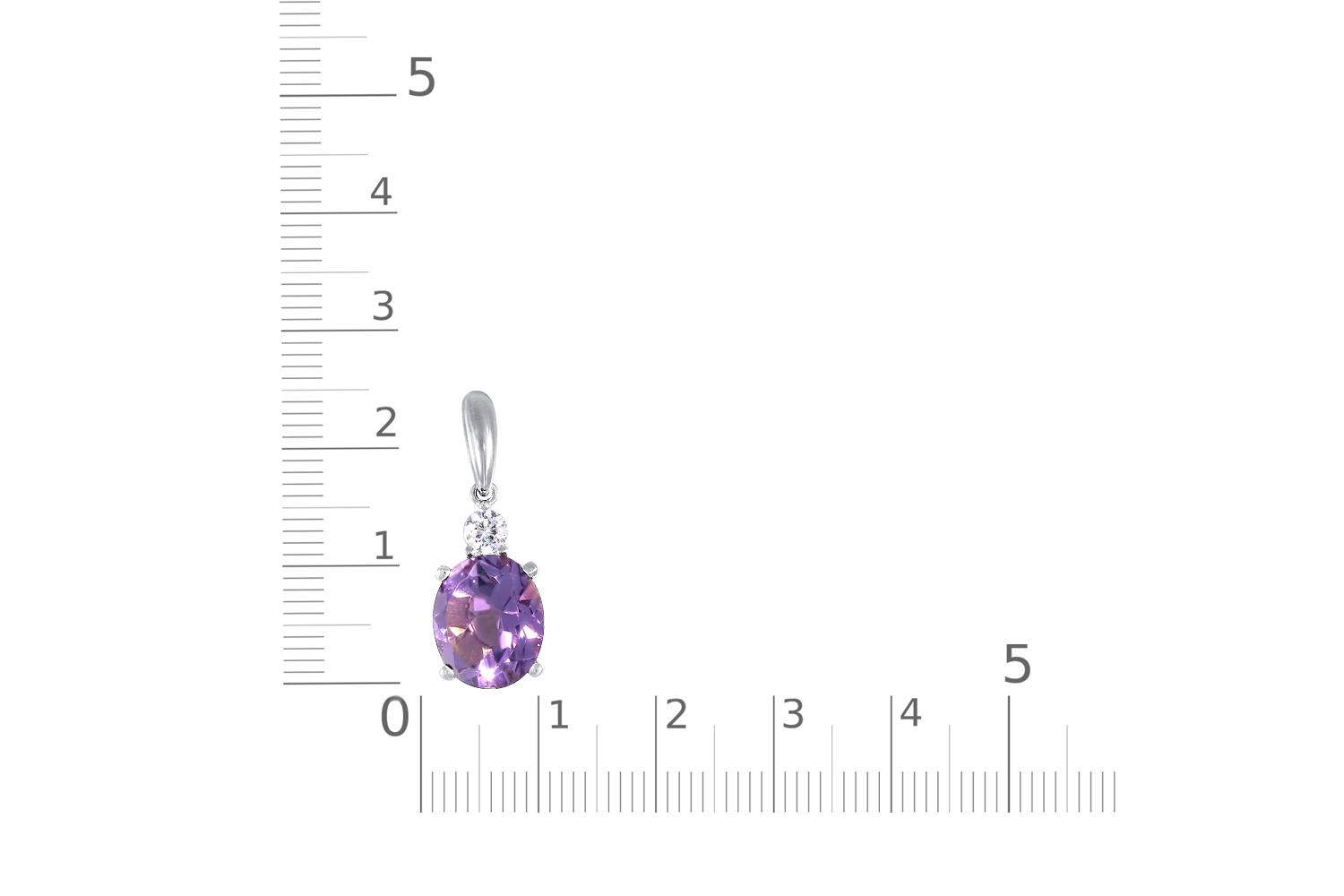 Аметист натуральный, количество 1 шт., огранка овал, размер 12ˣ10 ; Фианит б/цв, количество 1 шт., огранка круг, размер 4 мм