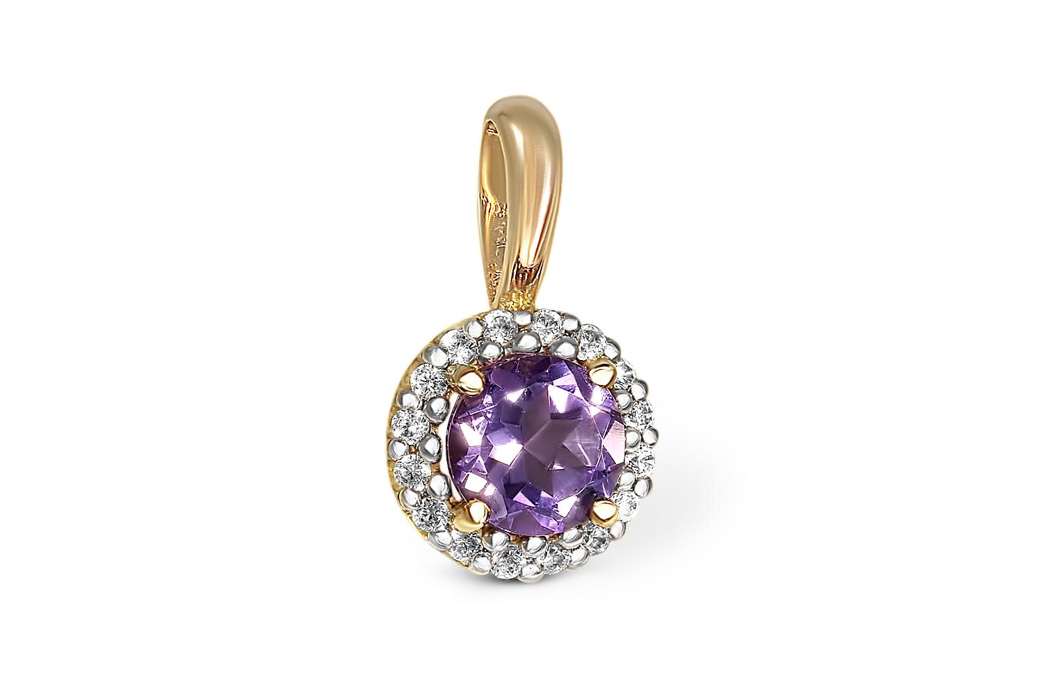 Мастера компании NEWGOLD, приложив всё свое мастерство и искусство, создали для Вас на нашем собственном производстве Подвеска из жёлтого золота с аметистом и 16 фианитами.