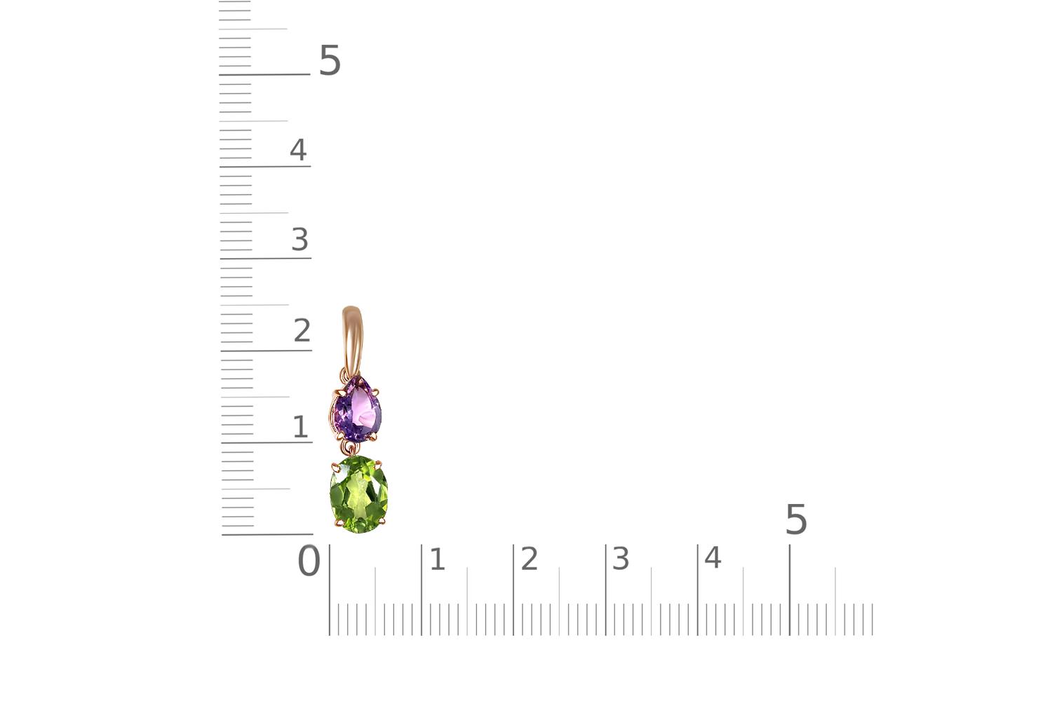 Мастера компании NEWGOLD, приложив всё свое мастерство и искусство, создали для Вас на нашем собственном производстве Подвеска из красного золота с хризолитом и аметистом.