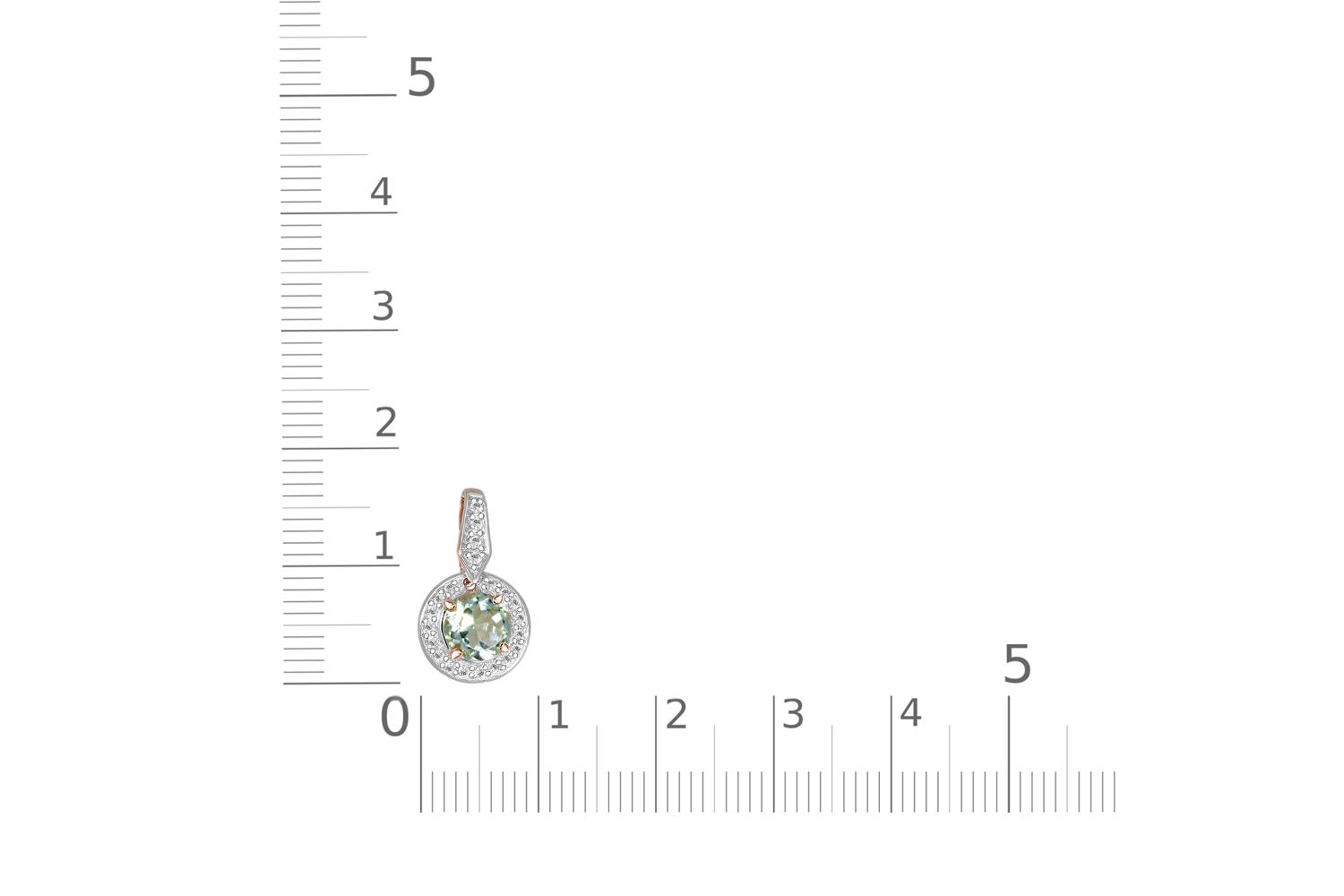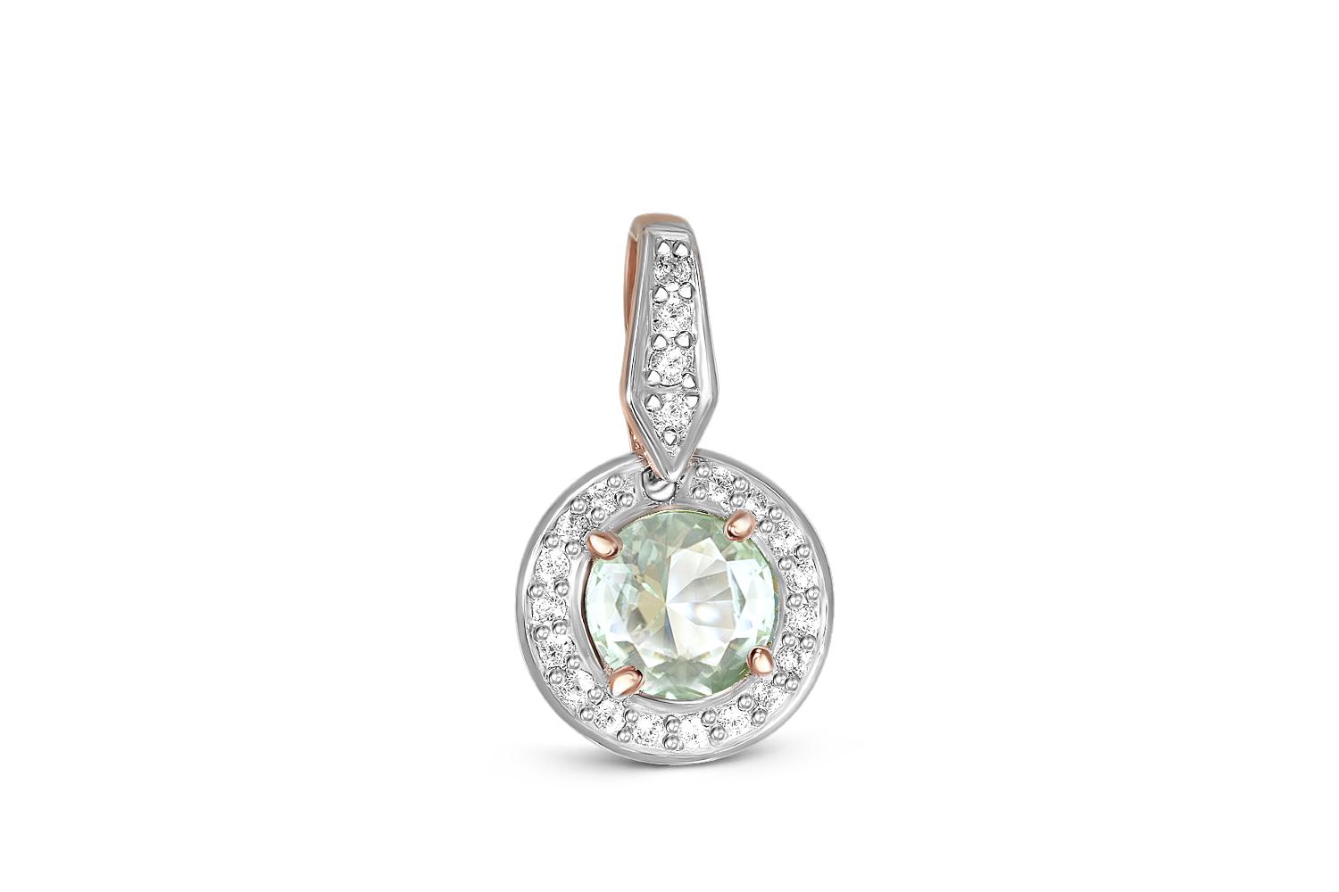Аметист зеленый натуральный, количество 1 шт., огранка круг, размер 6 мм ; Фианит б/цв, количество 4 шт., огранка круг, размер 1,25 мм ; Фианит б/цв, количество 17 шт., огранка круг, размер 1 мм