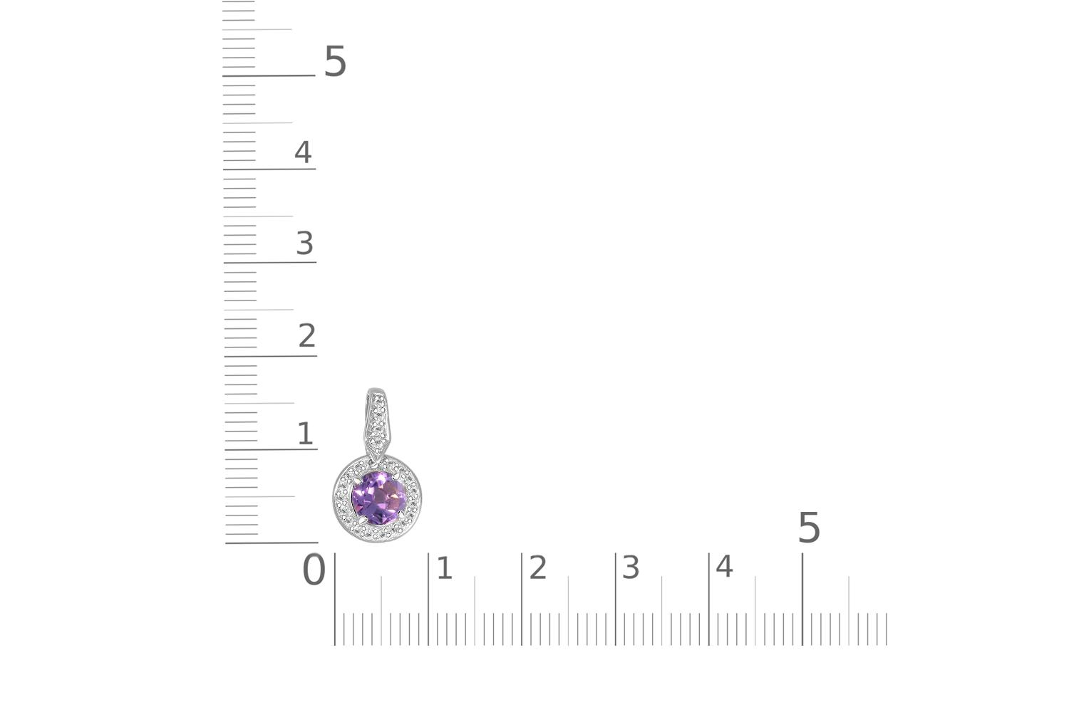 Аметист натуральный, количество 1 шт., огранка круг, размер 6 мм ; Фианит б/цв, количество 4 шт., огранка круг, размер 1,25 мм ; Фианит б/цв, количество 17 шт., огранка круг, размер 1 мм