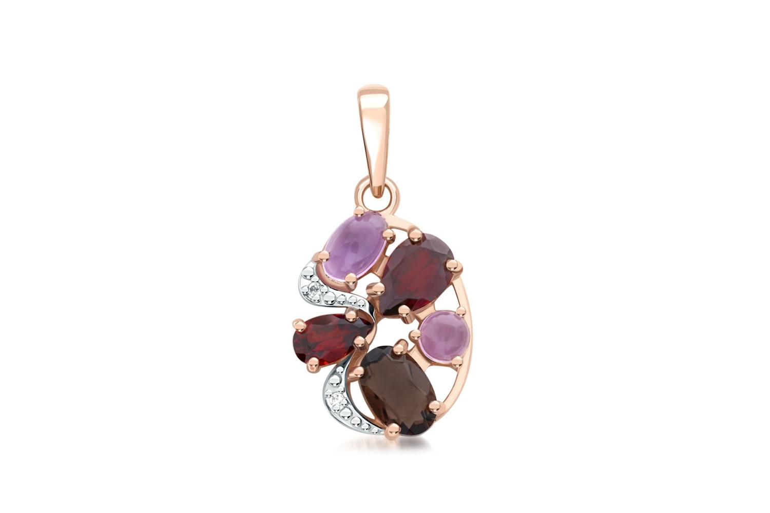 Мастера компании NEWGOLD, приложив всё свое мастерство и искусство, создали для Вас на нашем собственном производстве Подвеска из красного золота с гранатами, раухтопазом и фианитами.