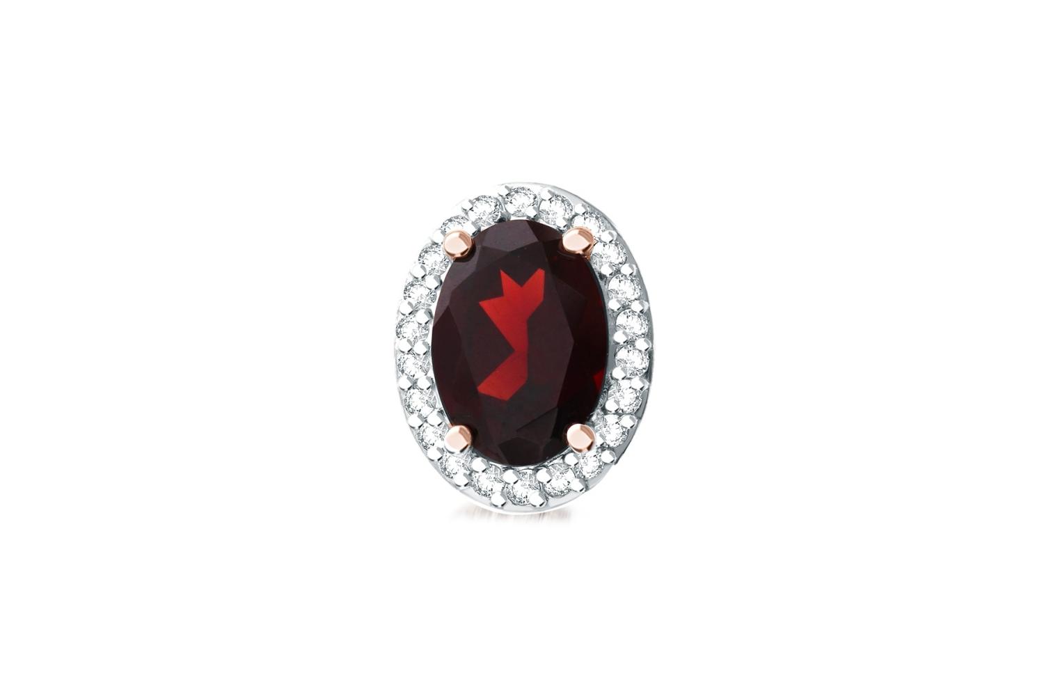 Гранат натуральный, количество 1 шт., огранка овал, размер 7ˣ5 ; Фианит б/цв, количество 22 шт., огранка круг, размер 0,9 мм