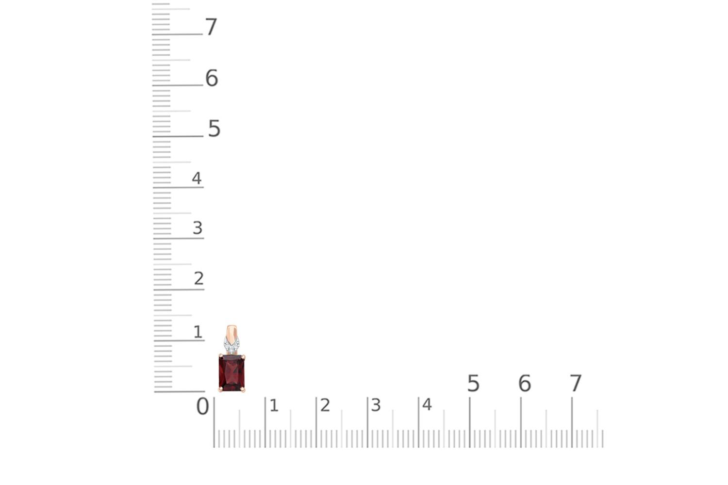 Гранат натуральный, количество 1 шт., огранка октагон, размер 7ˣ5 ; Бриллиант, количество 3 шт., огранка Кр-17, размер 0,9 мм, цвет 2, чистота 2, вес 0,01 карат.