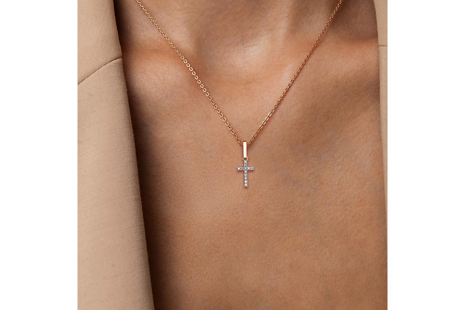 Мастера компании NEWGOLD, приложив всё свое мастерство и искусство, создали для Вас на нашем собственном производстве Подвеска Крест из красного золота с 12 бриллиантами.