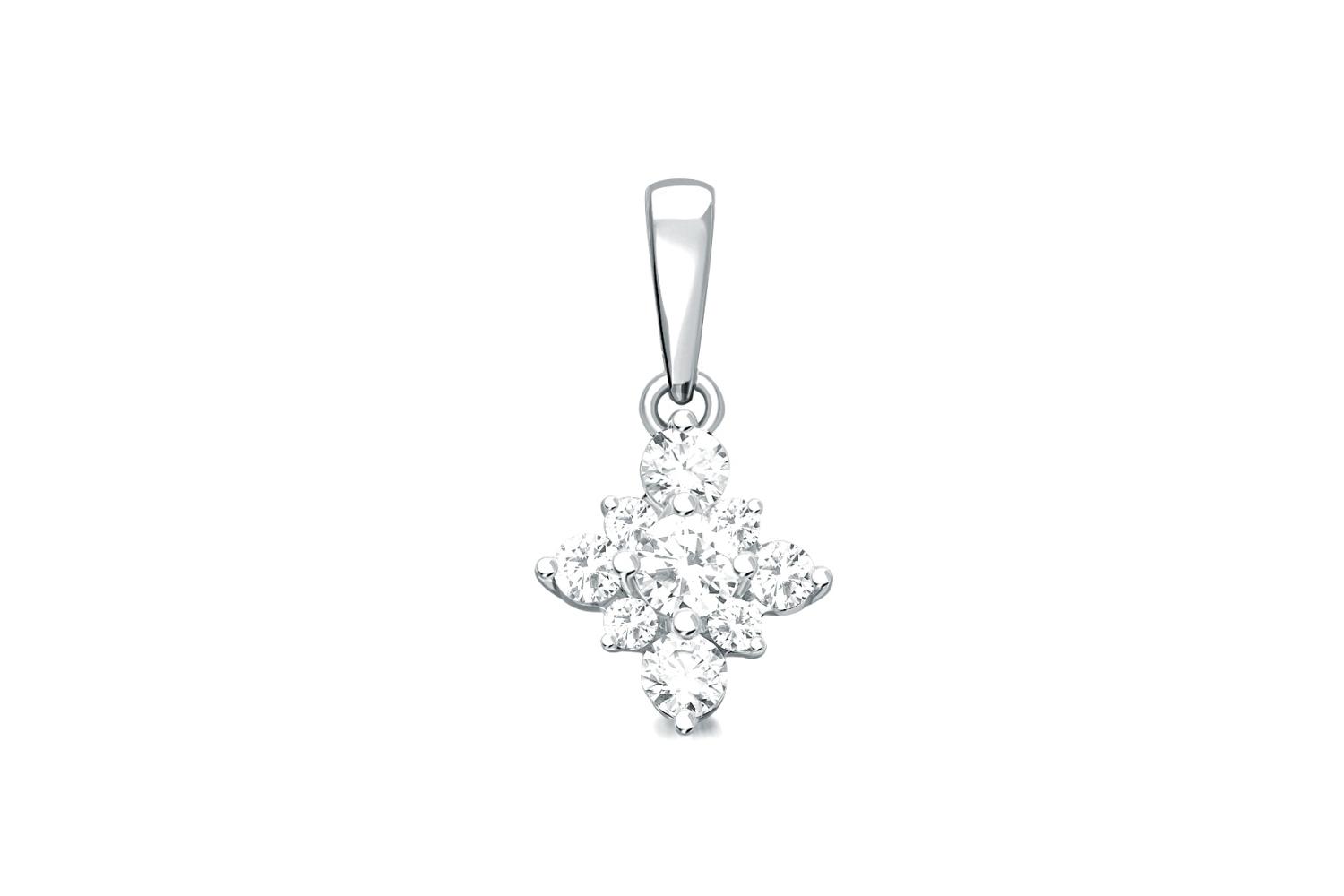 Мастера компании NEWGOLD, приложив всё свое мастерство и искусство, создали для Вас на нашем собственном производстве Подвеска из белого золота с 9 муассанитами.