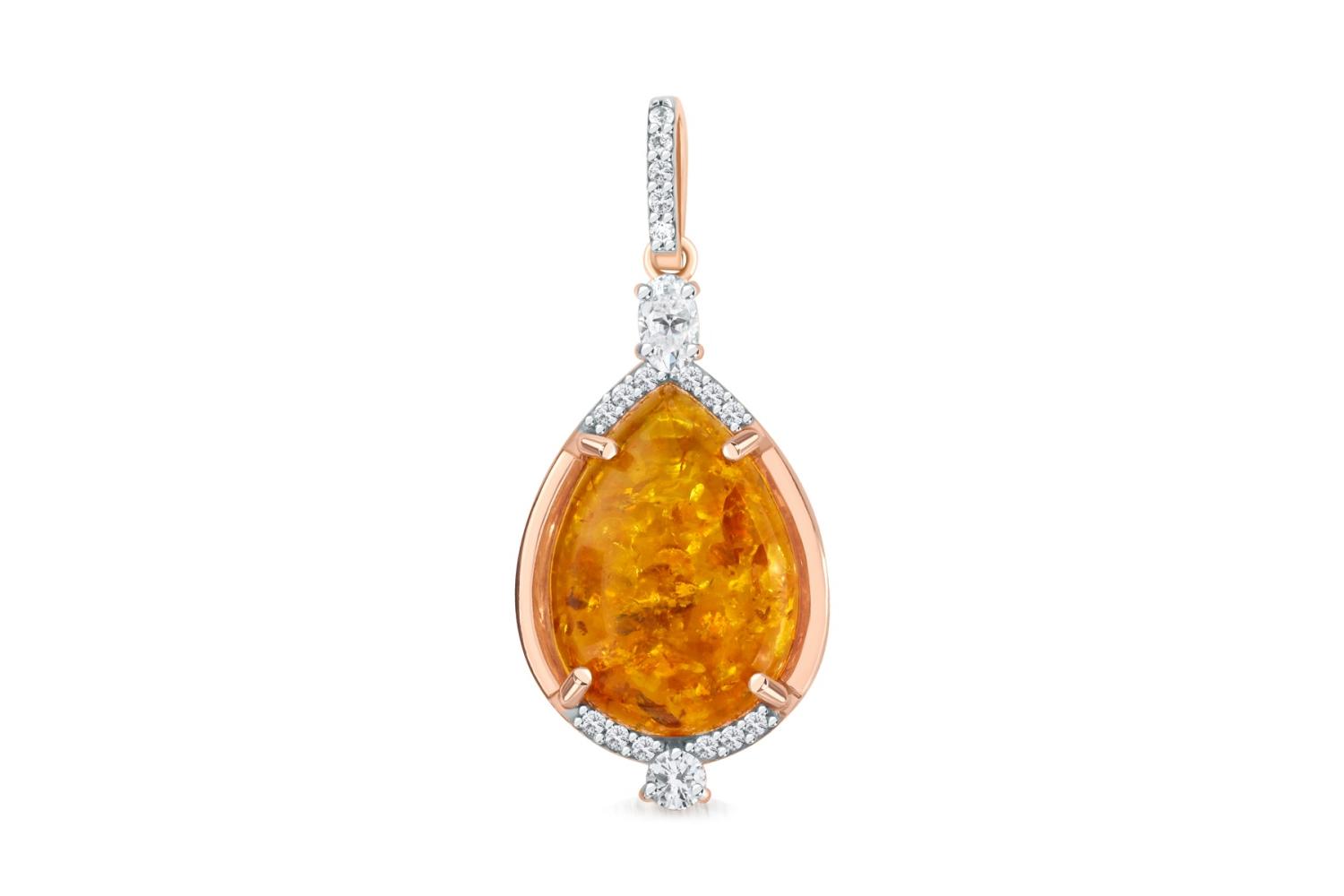 Мастера компании NEWGOLD, приложив всё свое мастерство и искусство, создали для Вас на нашем собственном производстве Подвеска из красного золота с янтарём и 19 фианитами.