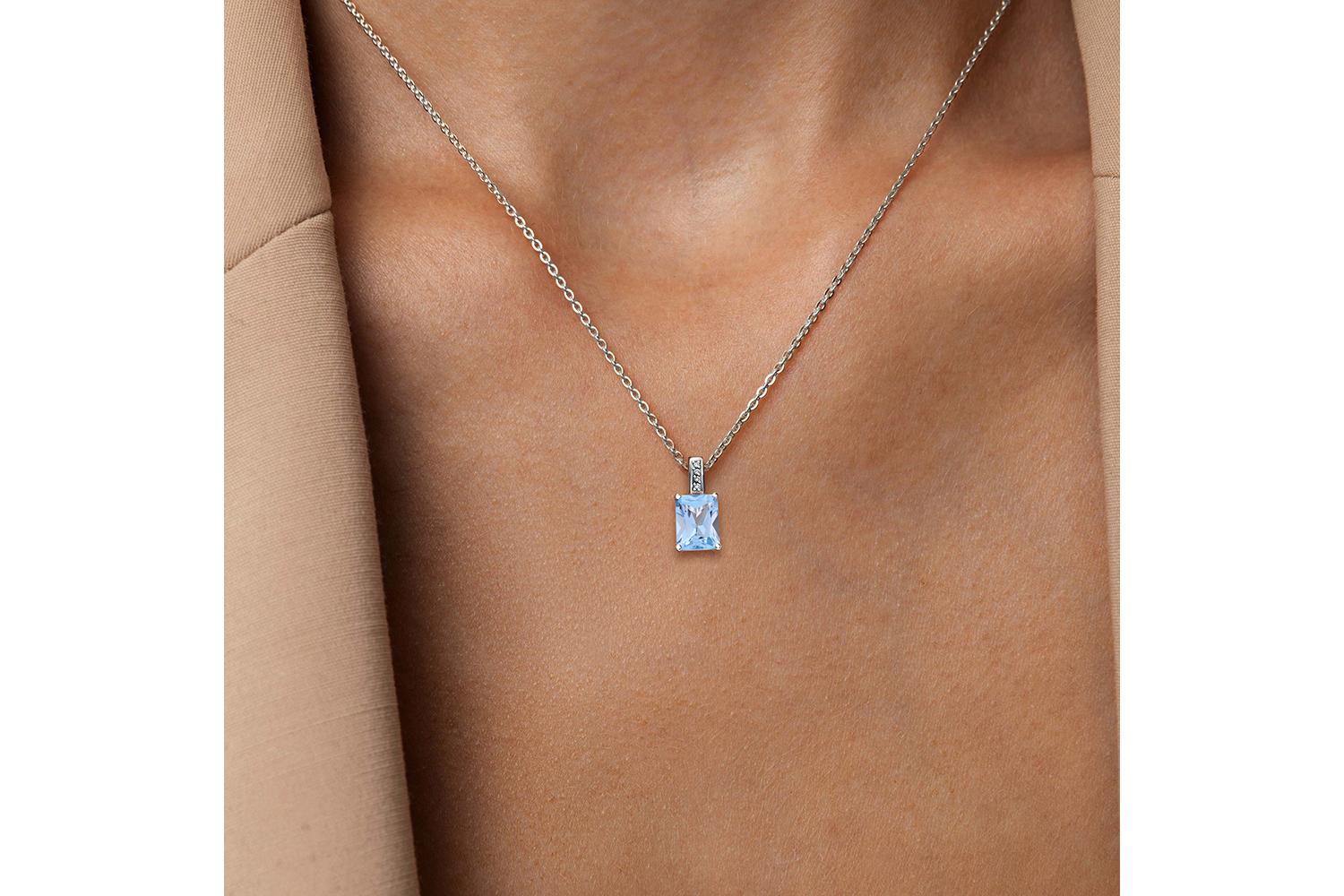 Мастера компании NEWGOLD, приложив всё свое мастерство и искусство, создали для Вас на нашем собственном производстве Подвеска из белого золота с топазом sky и 4 бриллиантами.