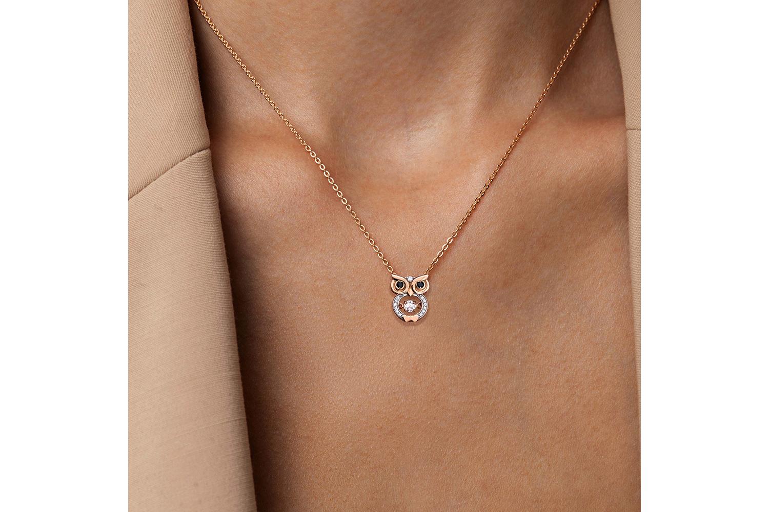 Мастера компании NEWGOLD, приложив всё свое мастерство и искусство, создали для Вас на нашем собственном производстве Подвеска Сова из красного золота с 14 муассанитами и 2 бриллиантами.