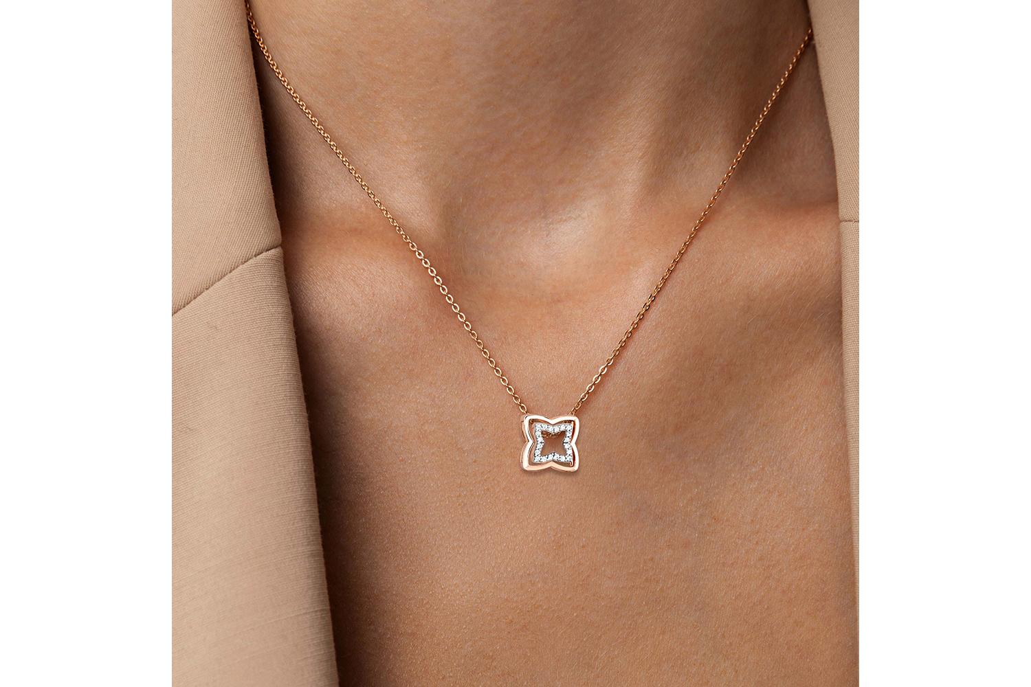 Мастера компании NEWGOLD, приложив всё свое мастерство и искусство, создали для Вас на нашем собственном производстве Комплект подвесок Клевер из красного золота с 20 выращенными бриллиантами.