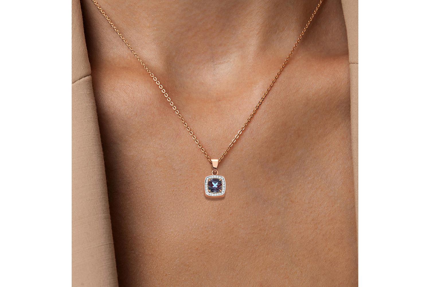 Мастера компании NEWGOLD, приложив всё свое мастерство и искусство, создали для Вас на нашем собственном производстве Подвеска из красного золота с александритом и 24 бриллиантами.