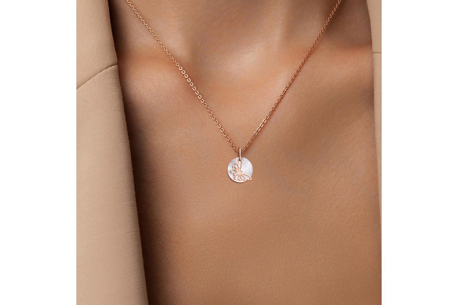 Мастера компании NEWGOLD, приложив всё свое мастерство и искусство, создали для Вас на нашем собственном производстве Подвеска Бабочка из красного золота с перламутром.