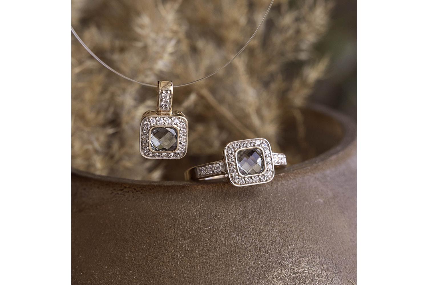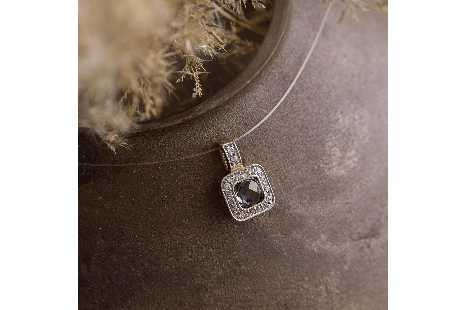 Топаз Sky натуральный, количество 1 шт., огранка антик-бриолет, размер 6ˣ6 ; Фианит б/цв, количество 2 шт., огранка круг, размер 1,5 мм ; Фианит б/цв, количество 18 шт., огранка круг, размер 1,25 мм