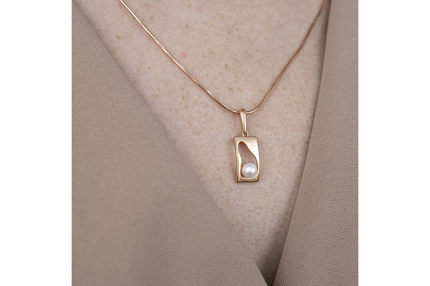 Мастера компании NEWGOLD, приложив всё свое мастерство и искусство, создали для Вас на нашем собственном производстве Подвеска Прямоугольник из красного золота с жемчугом.