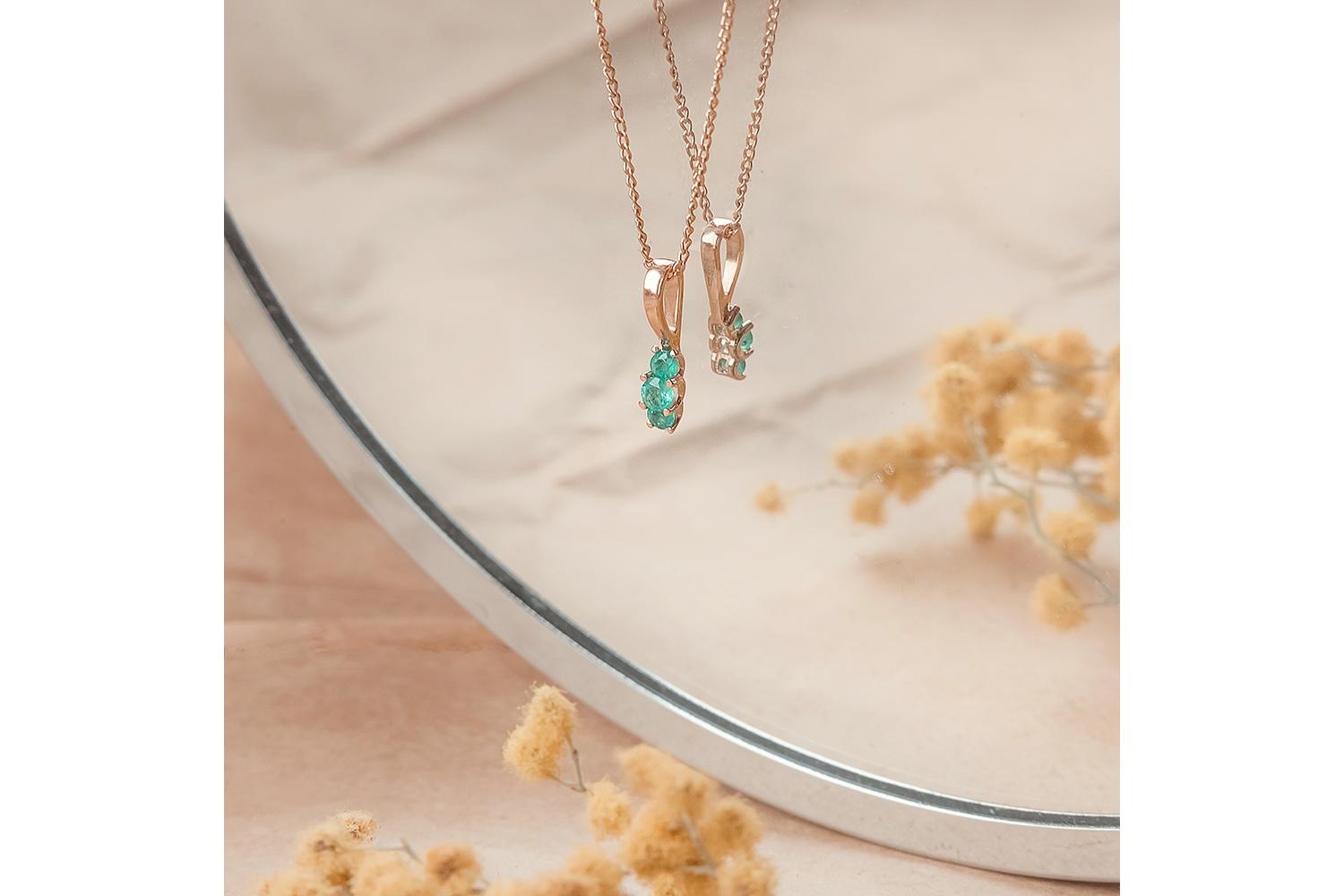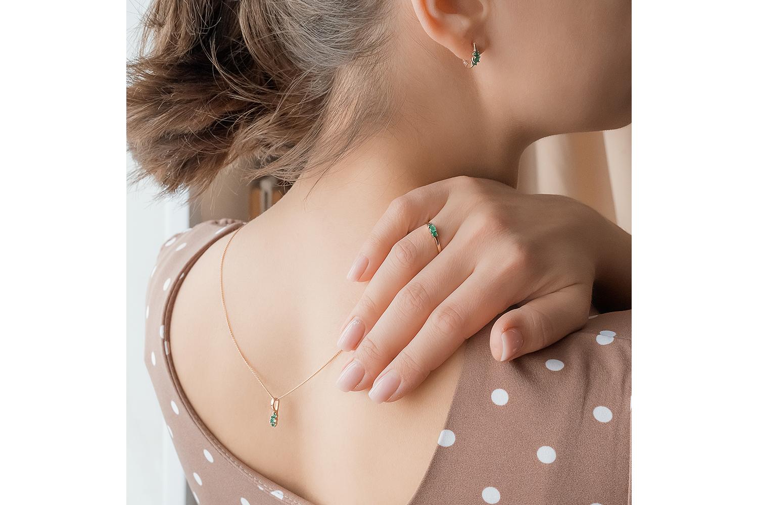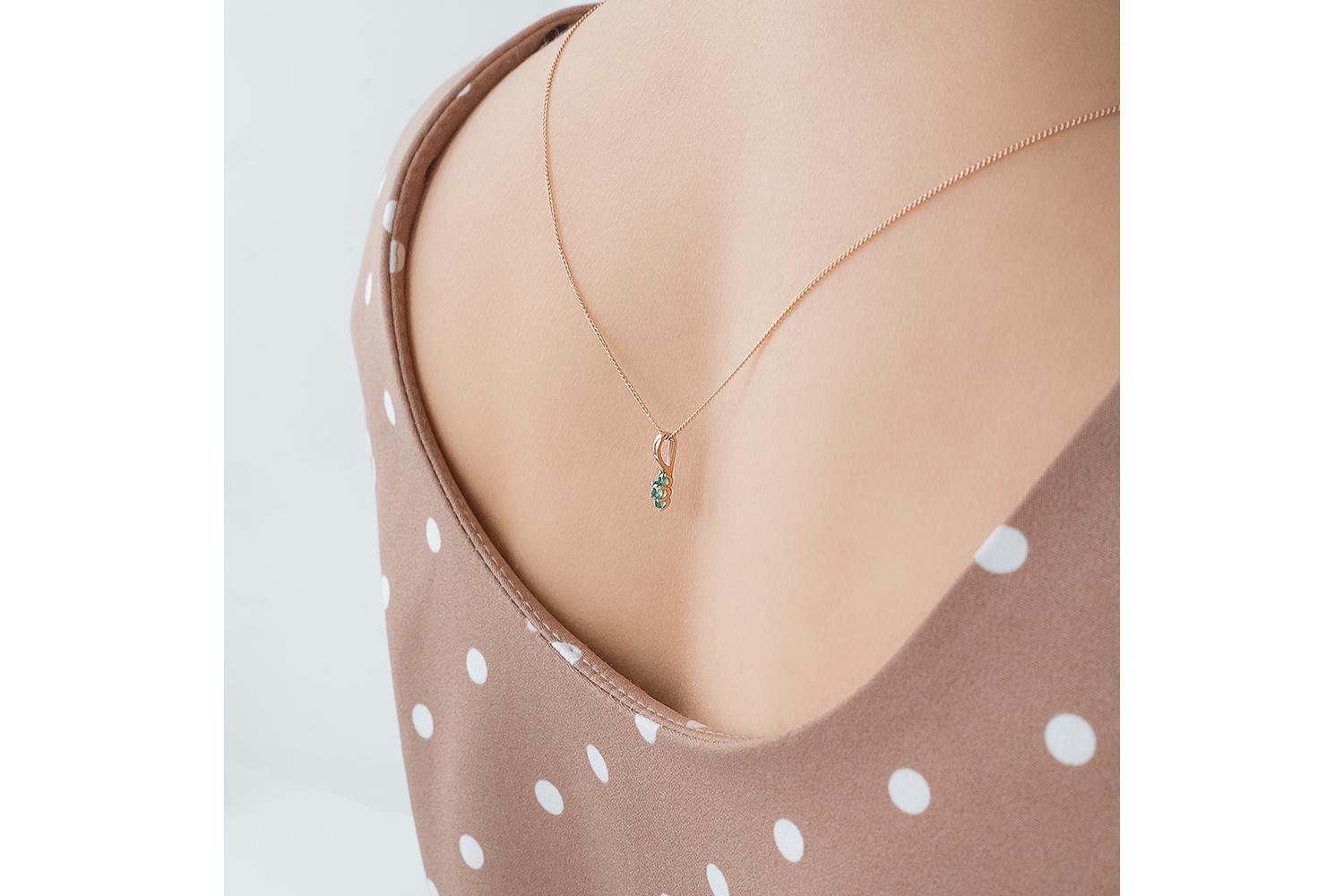 Мастера компании NEWGOLD, приложив всё свое мастерство и искусство, создали для Вас на нашем собственном производстве Подвеска из красного золота с 3 изумрудами.