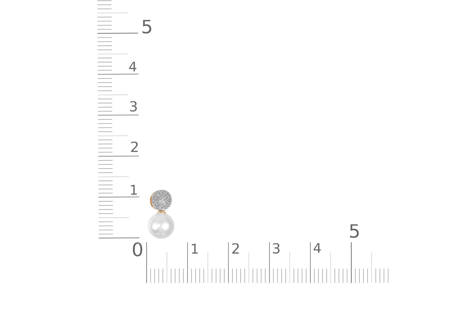 Жемчуг белый натуральный, количество 1 шт., огранка круг, размер 8ˣ8,5 ; Бриллиант, количество 31 шт., огранка Кр-17, размер 0,9 мм, цвет 2, чистота 2