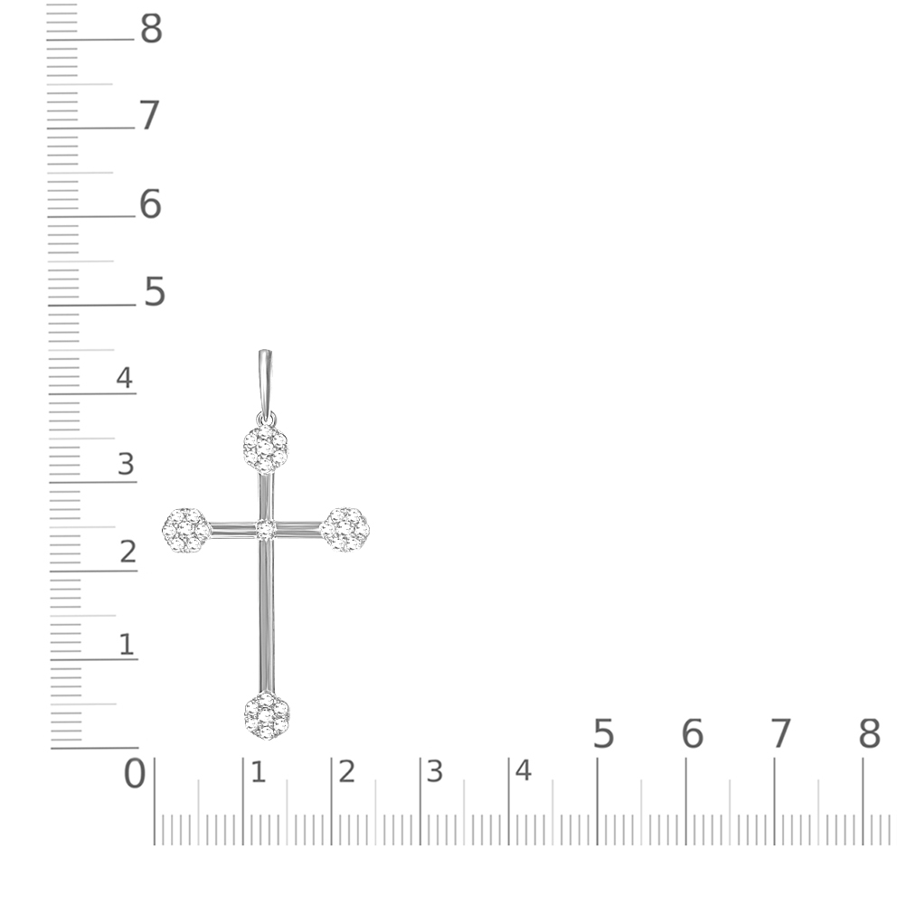 Подвеска крестик из белого золота 585 с 29 фианитами - это стильное и элегантное украшение, которое прекрасно подойдет для ношения на цепочке на шею. Преимущества этого украшения в его изысканном дизайне, высококачественных материалах и универсальности в использовании. Этот крестик станет отличным дополнением к вашему гардеробу. Белое золото отличается особым очарованием и престижностью, что делает его драгоценным и эксклюзивным аксессуаром.