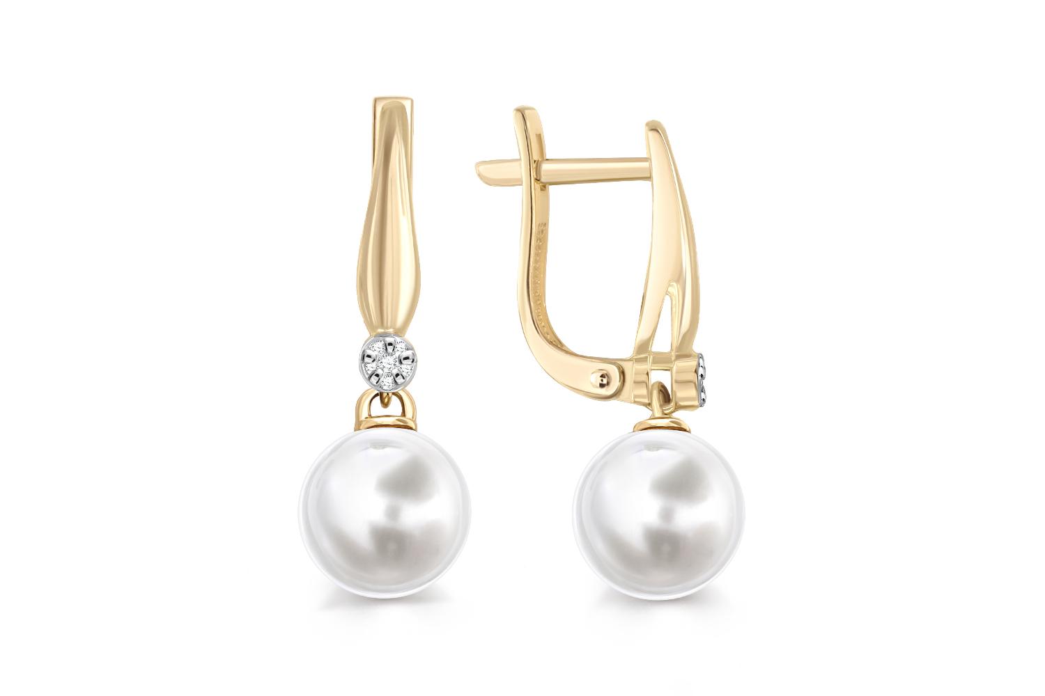 Мастера компании NEWGOLD, приложив всё свое мастерство и искусство, создали для Вас на нашем собственном производстве Серьги из жёлтого золота с 2 жемчужинами и 12 бриллиантами.