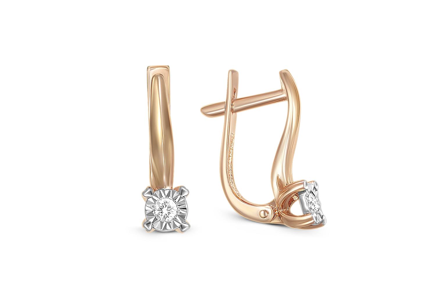 Закажите Серьги из красного золота с 2 бриллиантами с получением в Москве через курьерскую службу доставки напрямую с нашего производственного склада завода NEWGOLD!