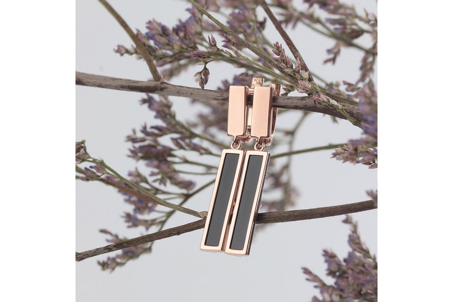 Мастера компании NEWGOLD, приложив всё свое мастерство и искусство, создали для Вас на нашем собственном производстве Серьги Прямоугольники из красного золота с 2 ониксами.