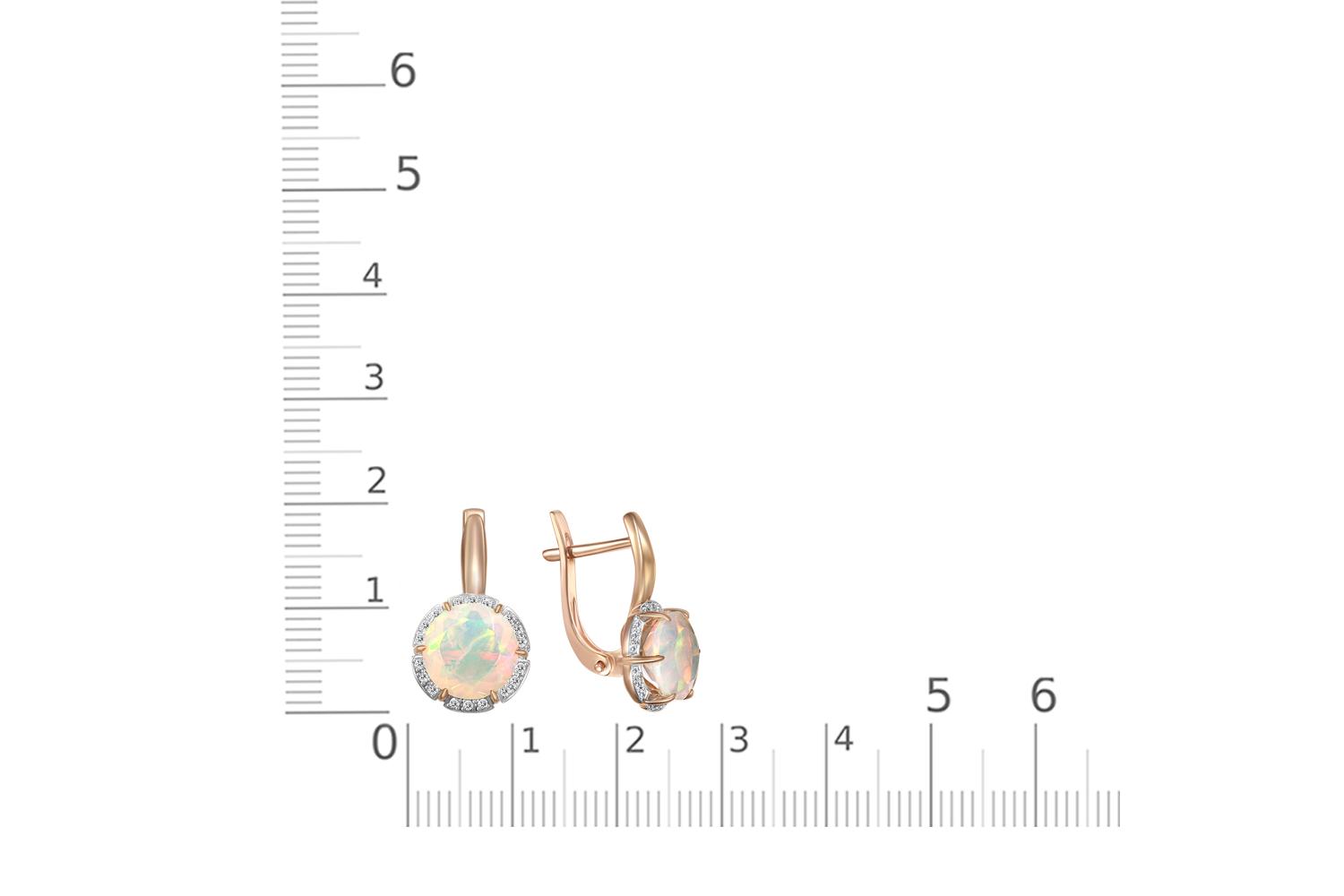 Мастера компании NEWGOLD, приложив всё свое мастерство и искусство, создали для Вас на нашем собственном производстве Серьги из красного золота с 2 опалами и 36 фианитами.