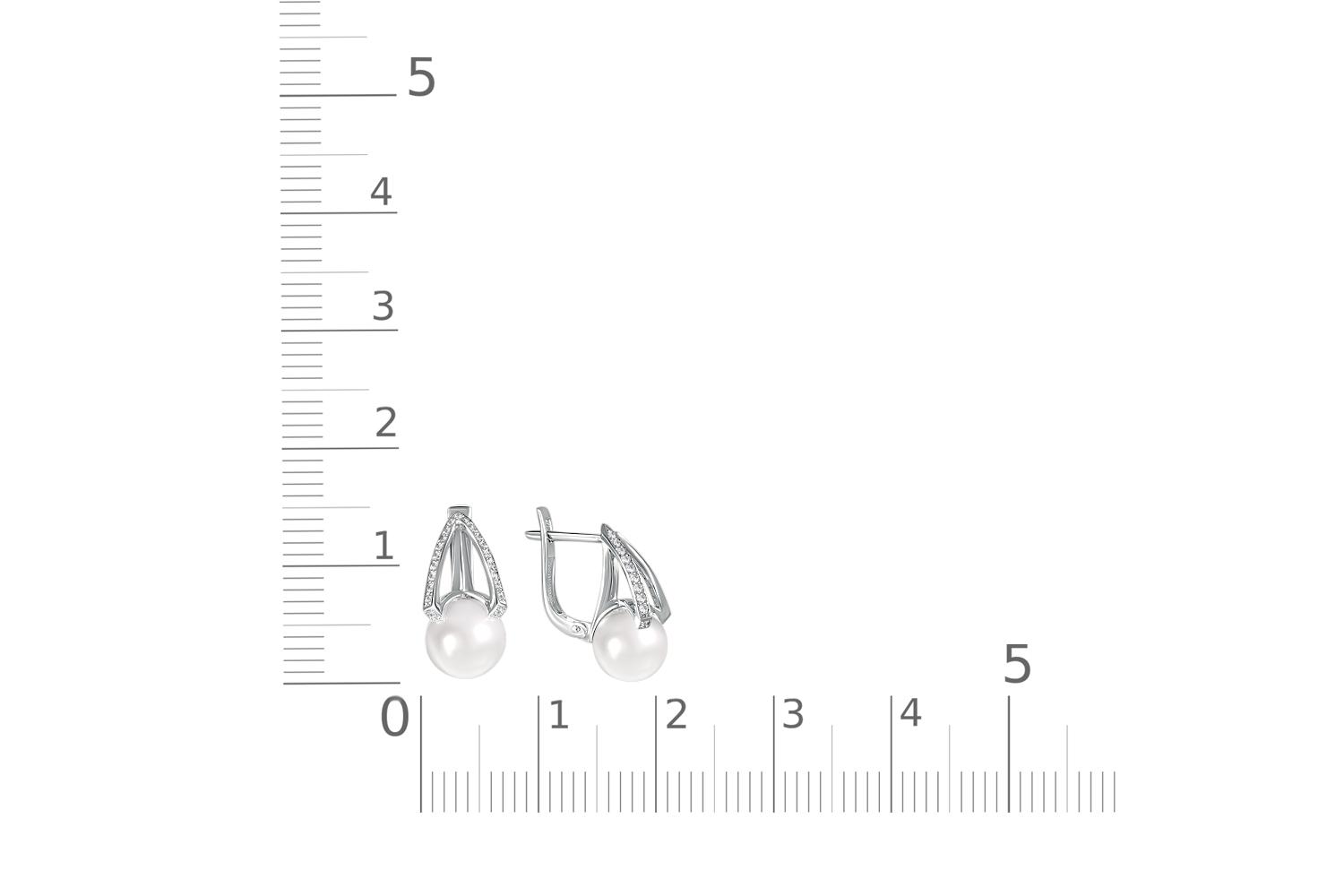 Жемчуг белый натуральный, количество 2 шт., огранка круг, размер 8ˣ8,5 ; Фианит б/цв, количество 42 шт., огранка круг, размер 1 мм
