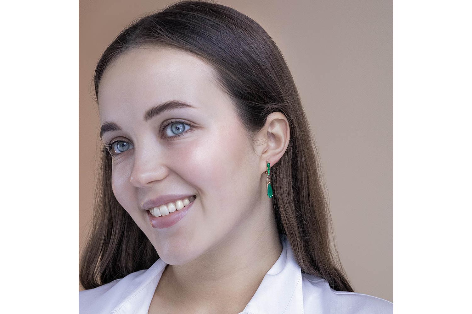 Мастера компании NEWGOLD, приложив всё свое мастерство и искусство, создали для Вас на нашем собственном производстве Серьги из красного золота с 10 агатами.