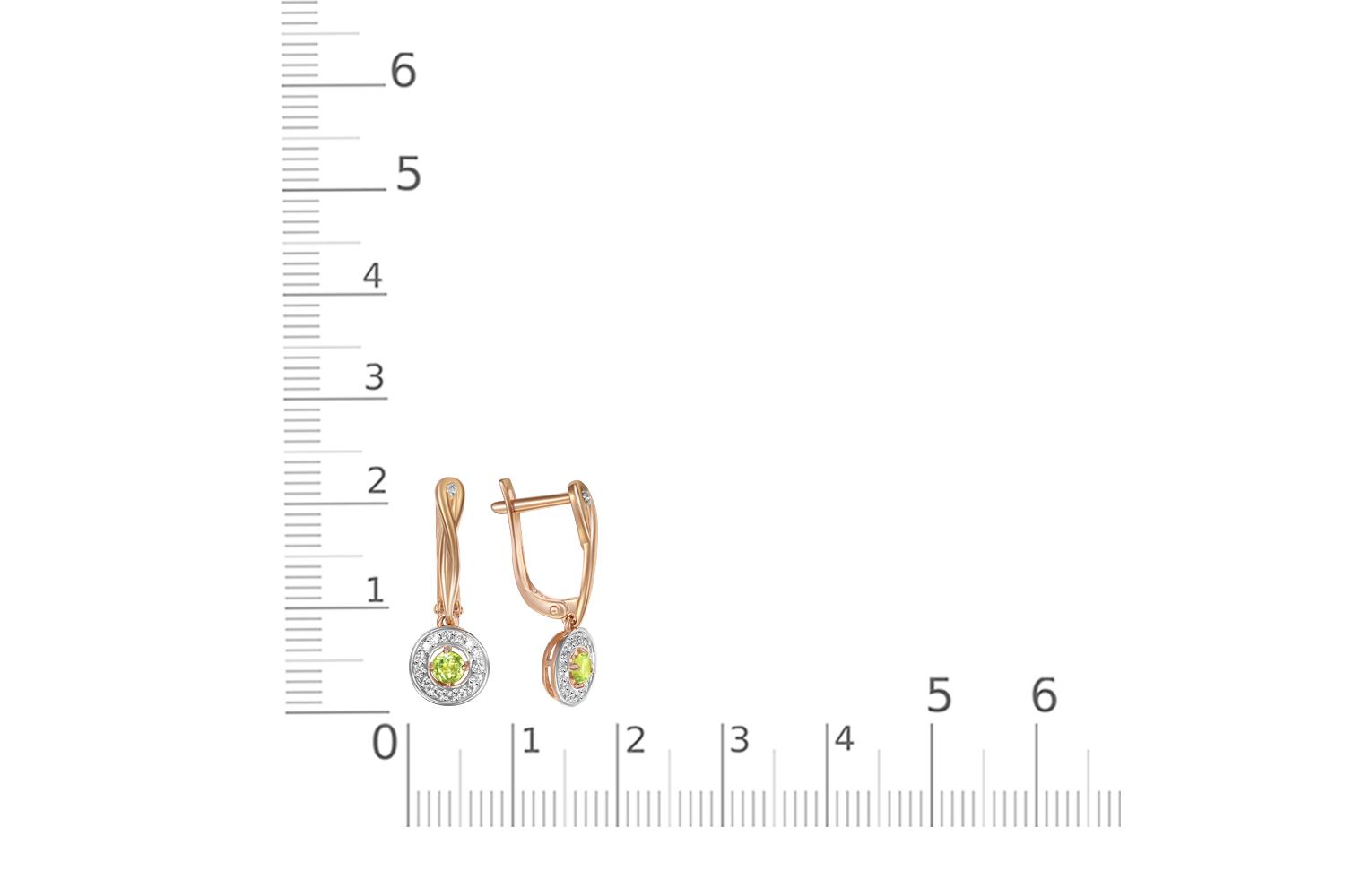 Мастера компании NEWGOLD, приложив всё свое мастерство и искусство, создали для Вас на нашем собственном производстве Серьги из красного золота с 2 хризолитами и 34 фианитами.