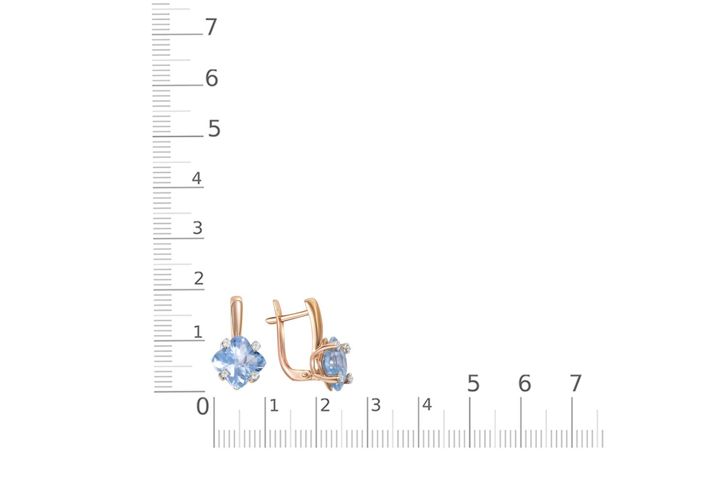 Мастера компании NEWGOLD, приложив всё свое мастерство и искусство, создали для Вас на нашем собственном производстве Серьги из красного золота с 2 топазами sky и 8 фианитами.