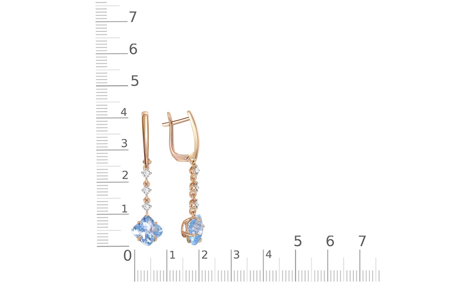 Мастера компании NEWGOLD, приложив всё свое мастерство и искусство, создали для Вас на нашем собственном производстве Серьги из красного золота с 2 топазами sky и 6 фианитами.