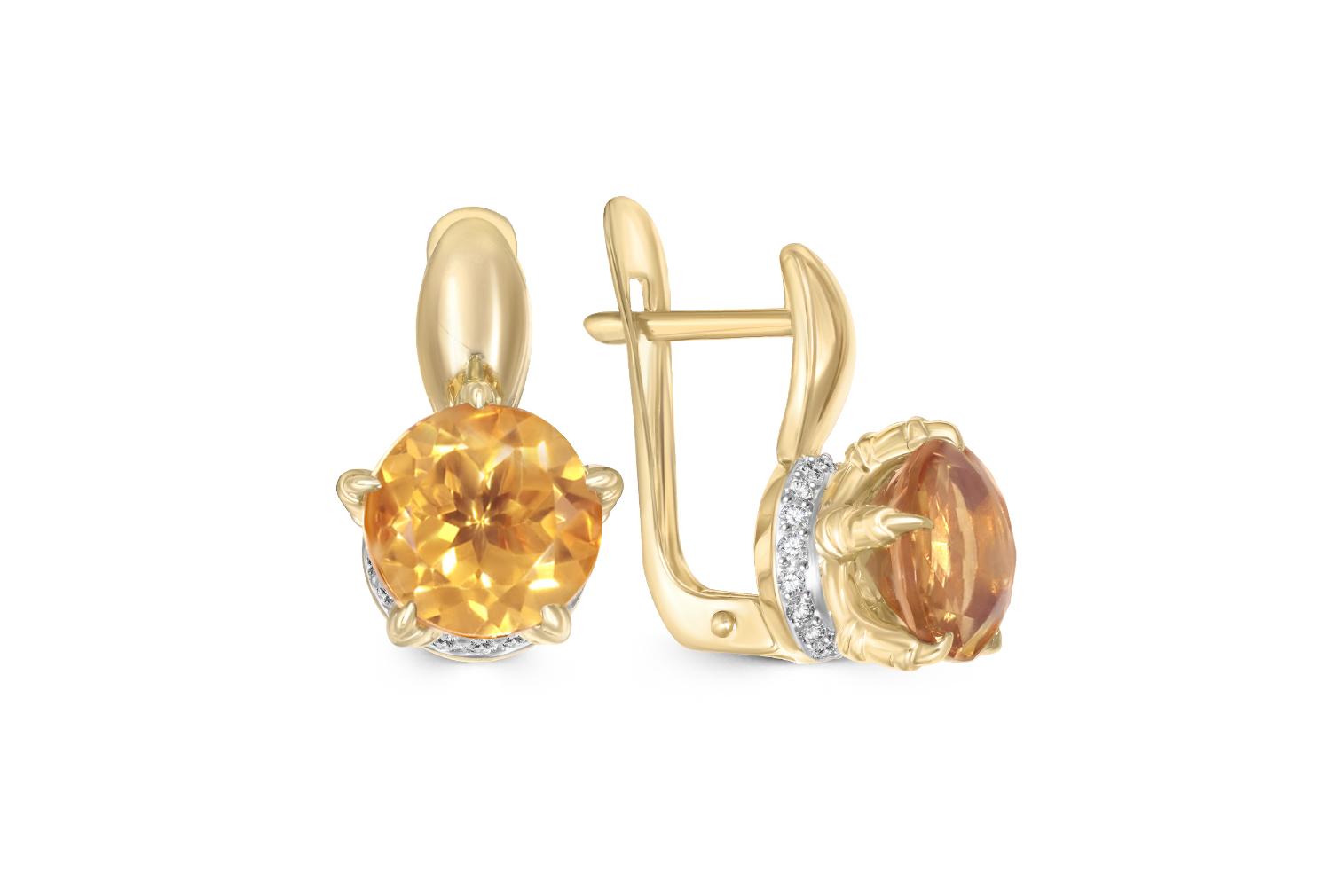 Мастера компании NEWGOLD, приложив всё свое мастерство и искусство, создали для Вас на нашем собственном производстве Серьги из жёлтого золота с 2 цитринами и 36 фианитами.